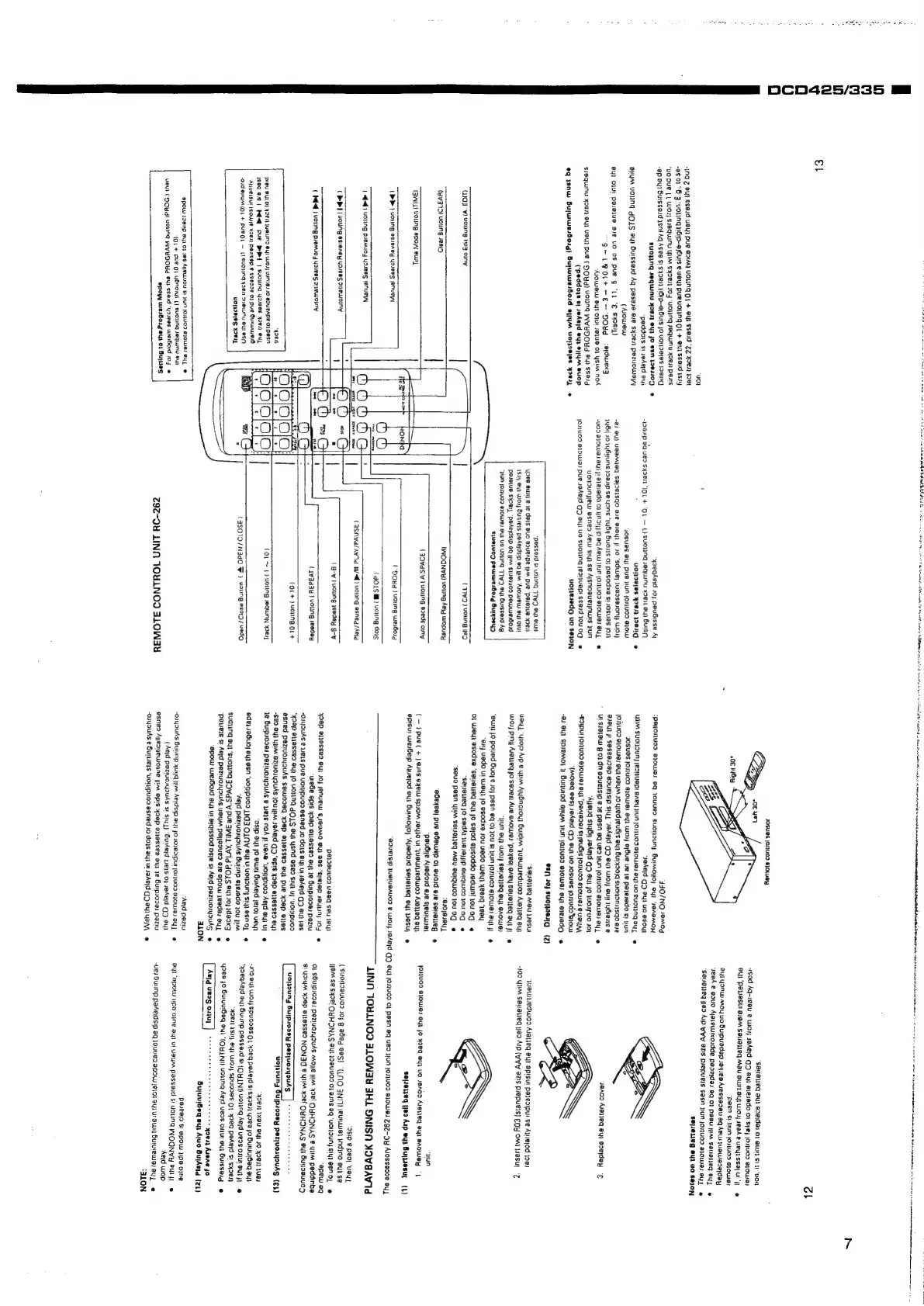 Denon DCD-425 - Remote Control Unit Usage