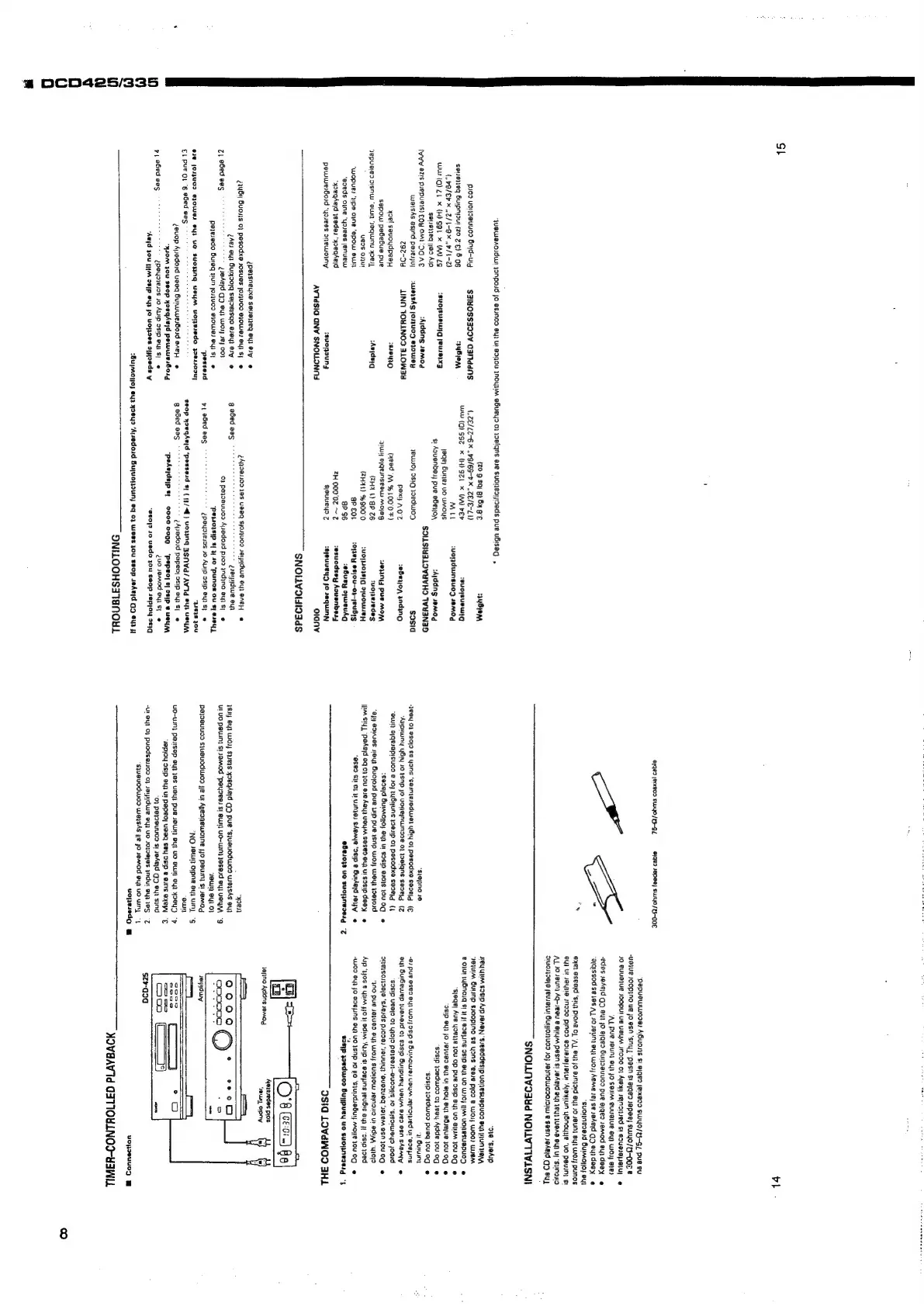 Denon DCD-425 - TECHNICAL PROCEDURES AND MAINTENANCE; Timer Playback, Connection, and Troubleshooting; Compact Disc Handling and Storage