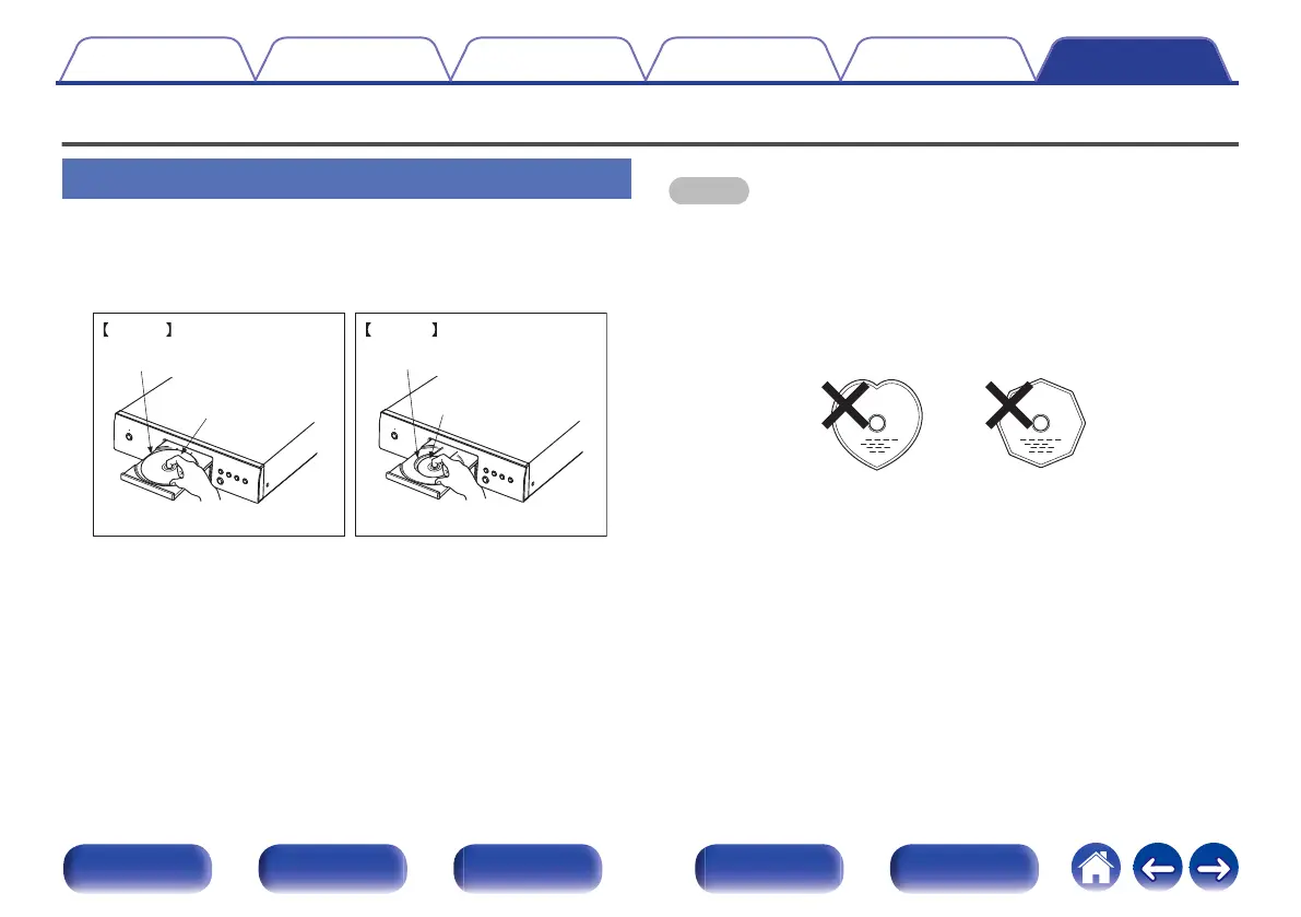Do not push the disc tray in by hand when the power is off. Doing so could