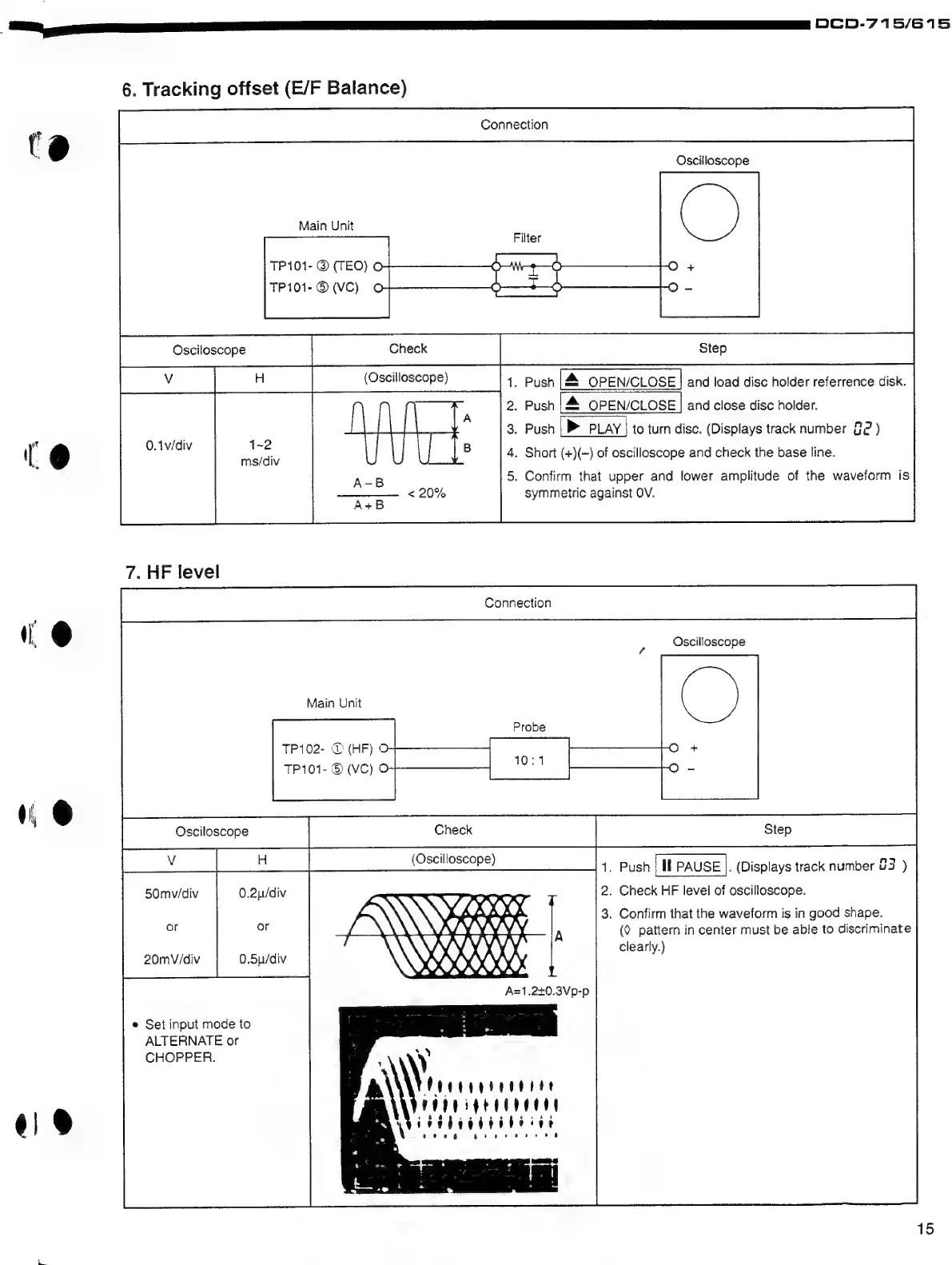 Denon DCD-615 - ADJUSTMENT (Continued); Tracking Offset (E;F Balance) Adjustment; HF Level Adjustment