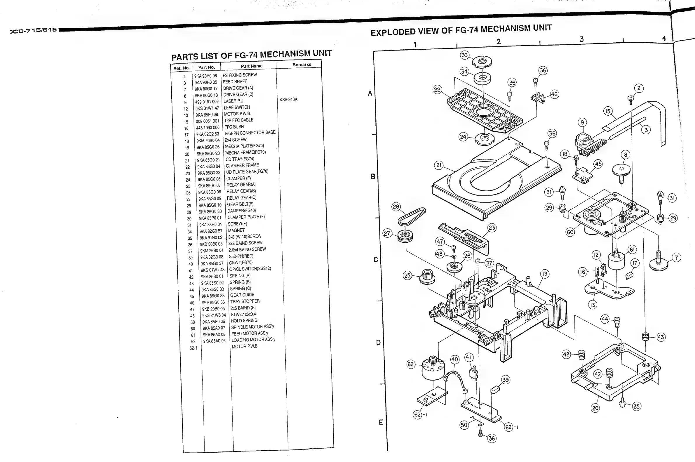 Denon DCD-615 - MECHANISM UNIT PARTS LIST AND DIAGRAMS; FG-74 Mechanism Unit Parts List; FG-74 Mechanism Exploded View