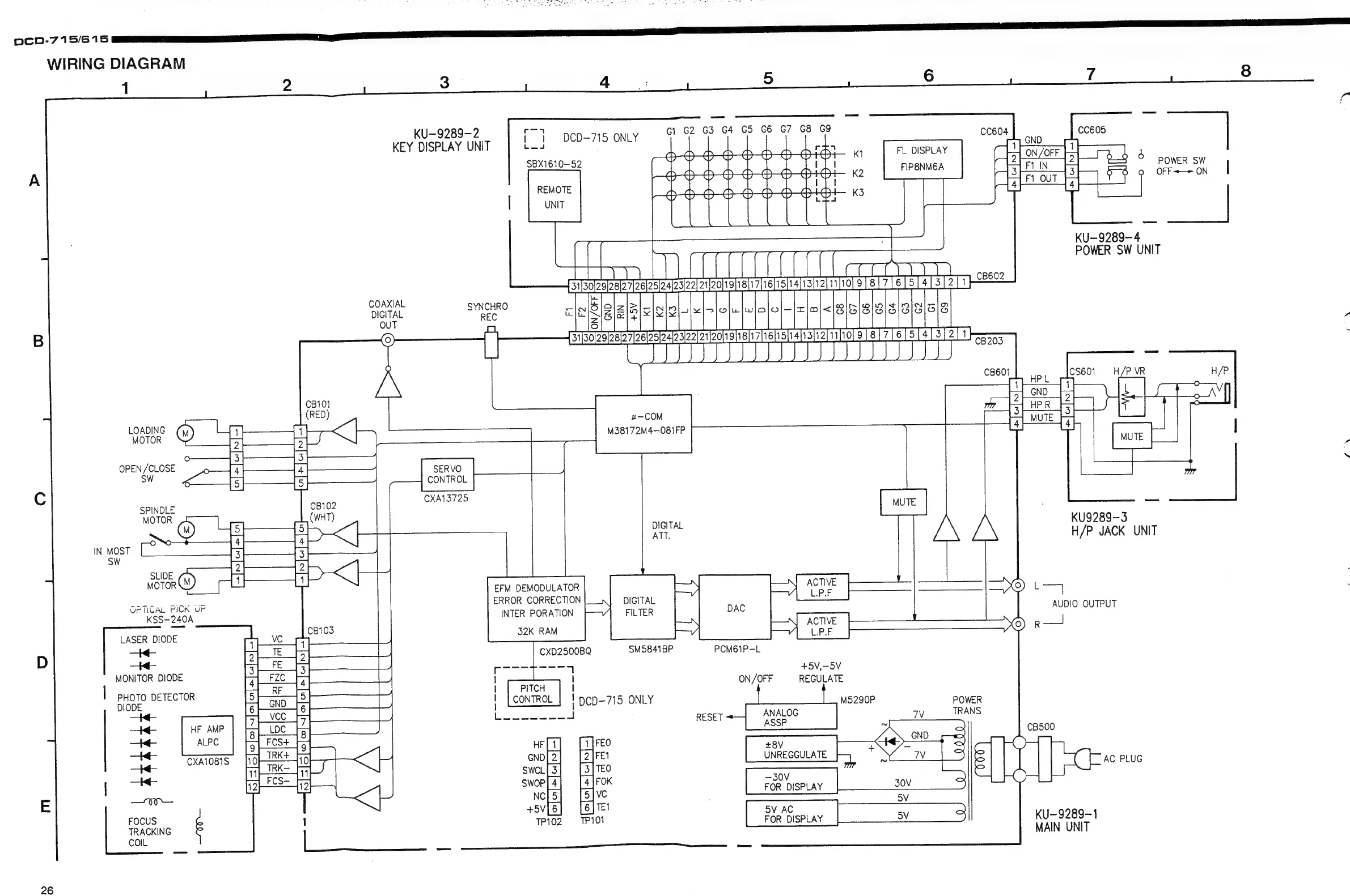 Denon DCD-615 - WIRING DIAGRAM; Key Display Unit Wiring; Power Switch Unit Wiring; H;P Jack Unit Wiring
