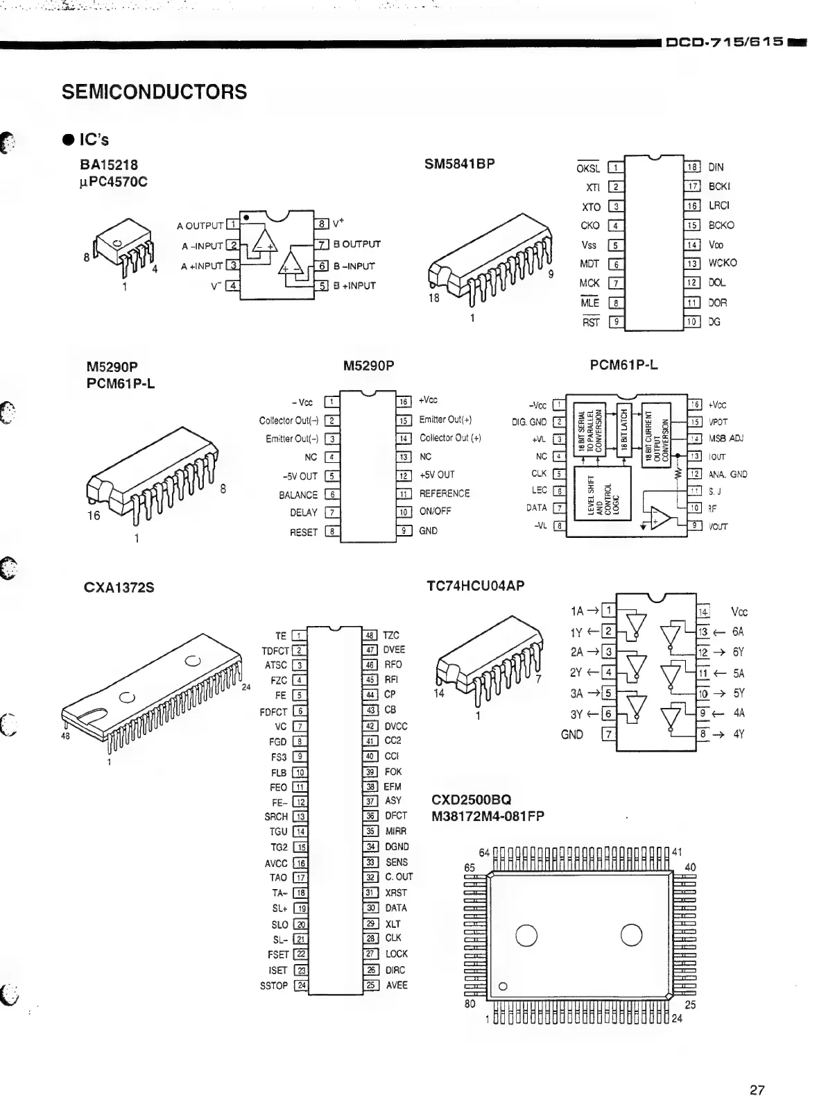 Denon DCD-615 - INTEGRATED CIRCUIT (IC) PINOUTS; CXD2500 BQ and CXA1372 S Pinouts