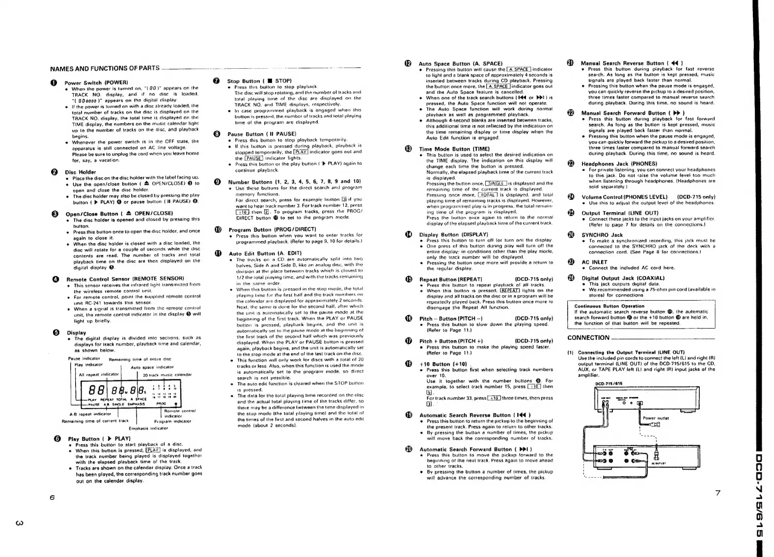 Denon DCD-615 - NAMES AND FUNCTIONS OF PARTS; Remote Control Operations