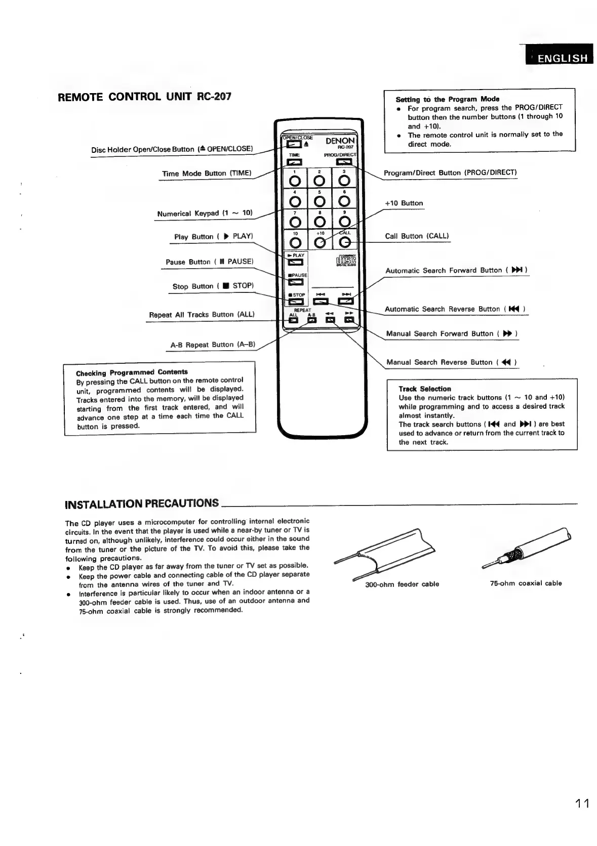 Denon DCD-620 - Remote Control Unit Rc
