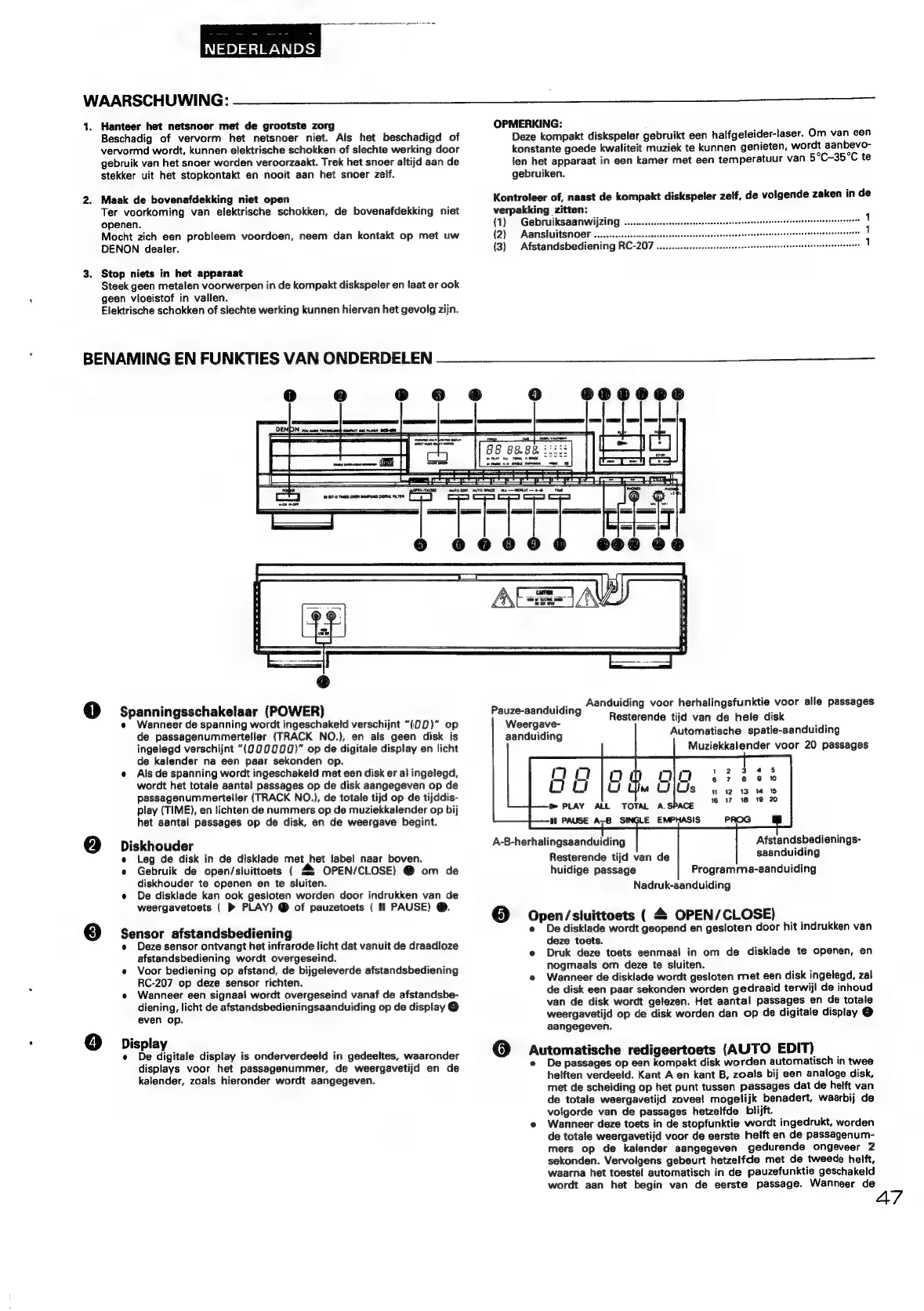 Denon DCD-620 - Benaming en Funkties Van Onderdelen