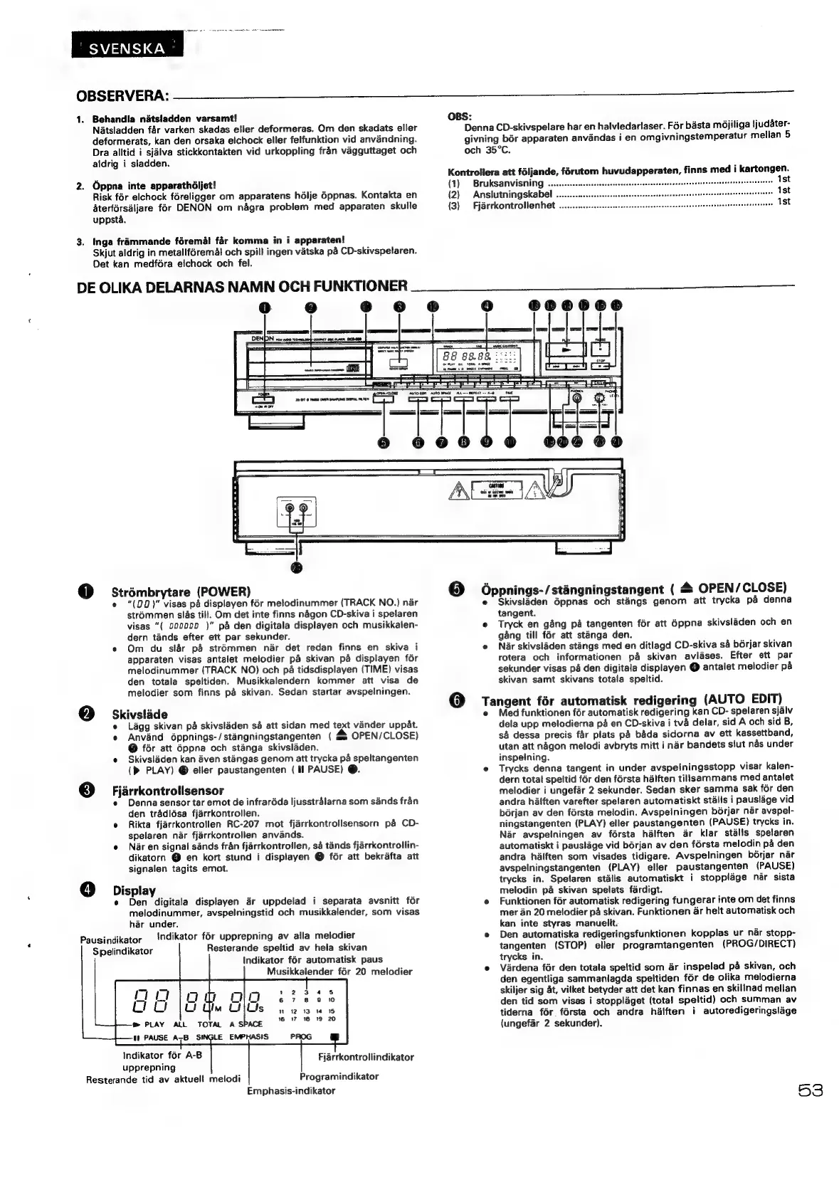 Denon DCD-620 - De Olika Delarnas Namn Och Funktioner