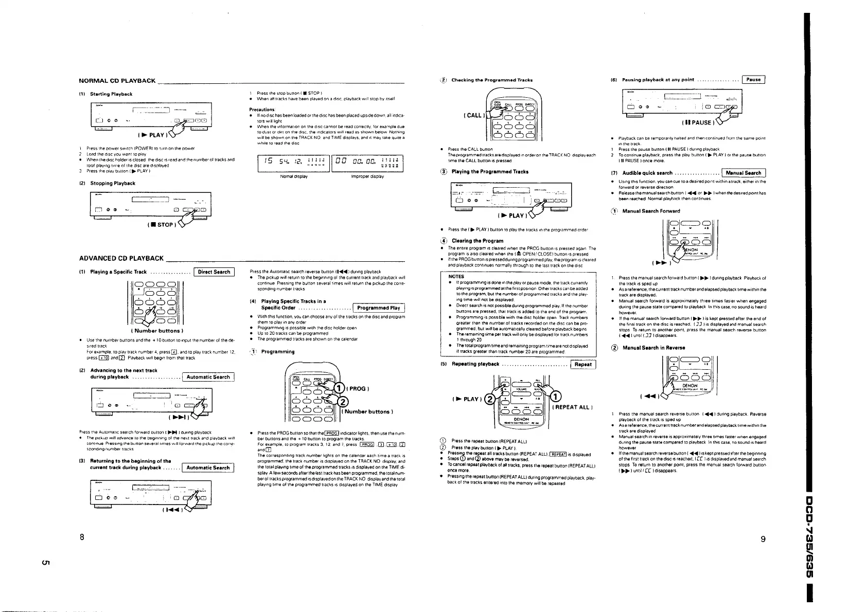 Denon DCD-635 - CD Playback Modes; Programmed and Repeat Playback
