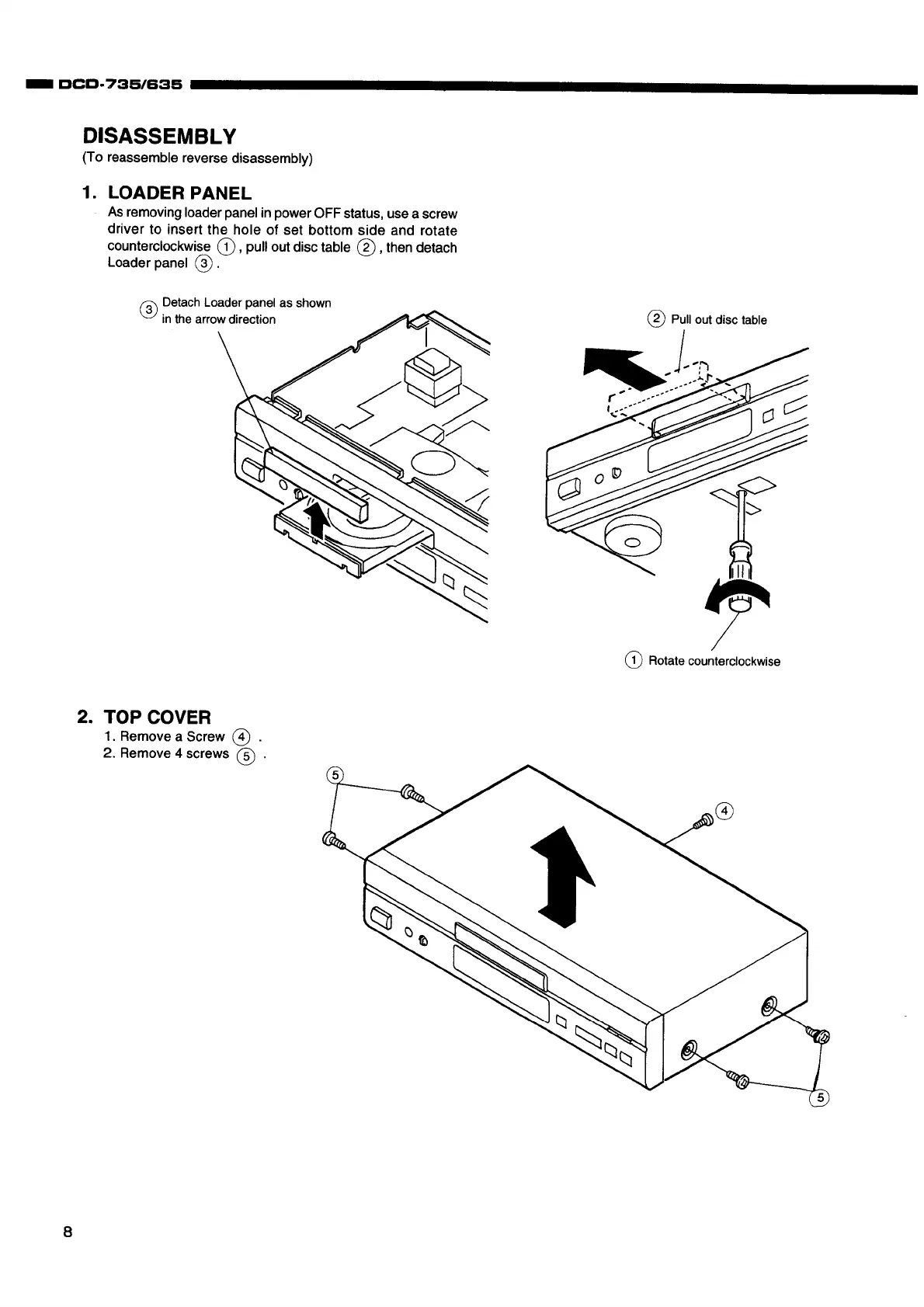 Denon DCD-635 - Disassembly; Loader Panel; Top Cover