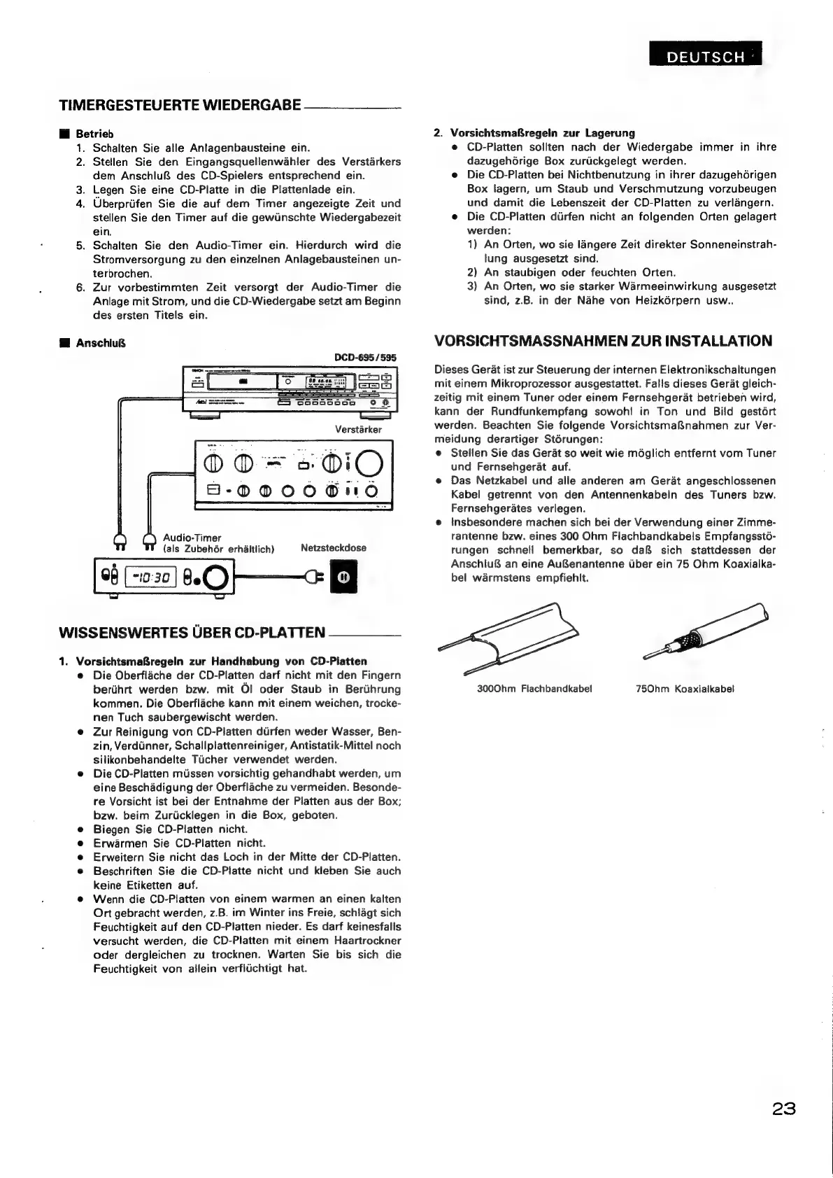 Denon DCD-695 - Timergesteverte Wiedergabe; Wissenswertes Uber CD-Platten; Eescseeeeee; Vorsichtsmassnahmen zur Installation
