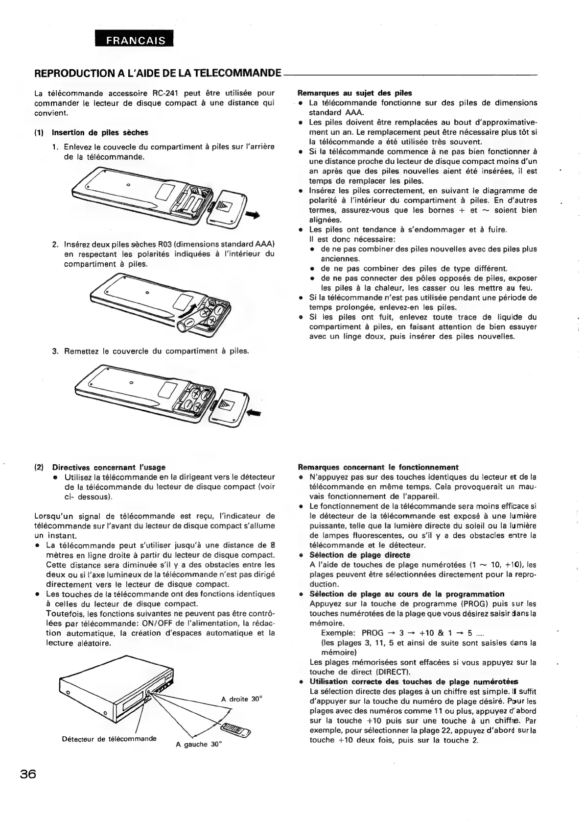 Denon DCD-695 - Reproduction a Laide de la Telecommande