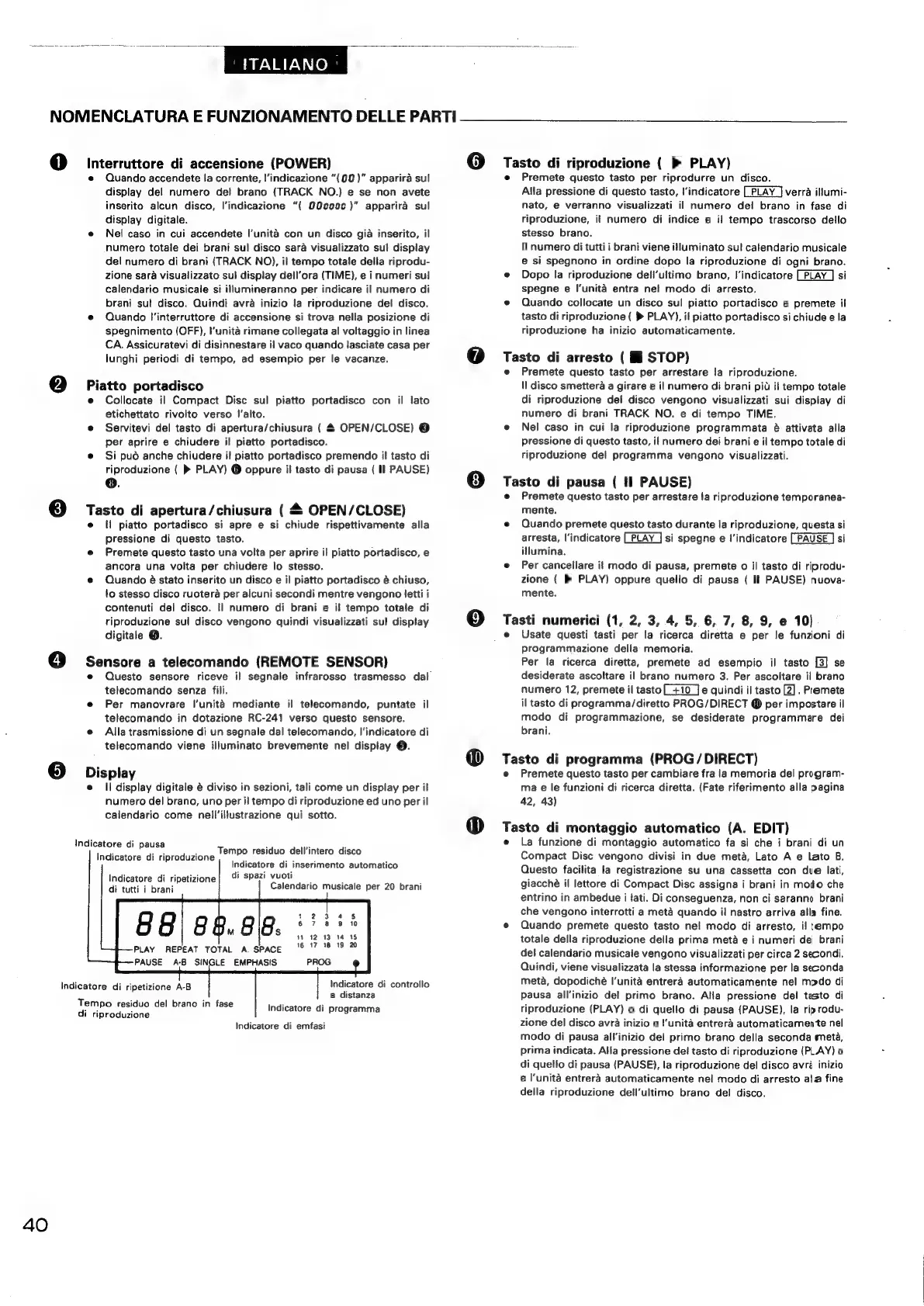 Denon DCD-695 - Nomenclatura E Funzionamento Delle Parti