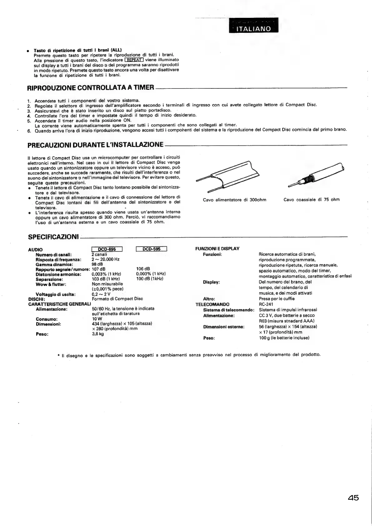 Denon DCD-695 - Precauzioni Durante Linstallazione; Specificazioni