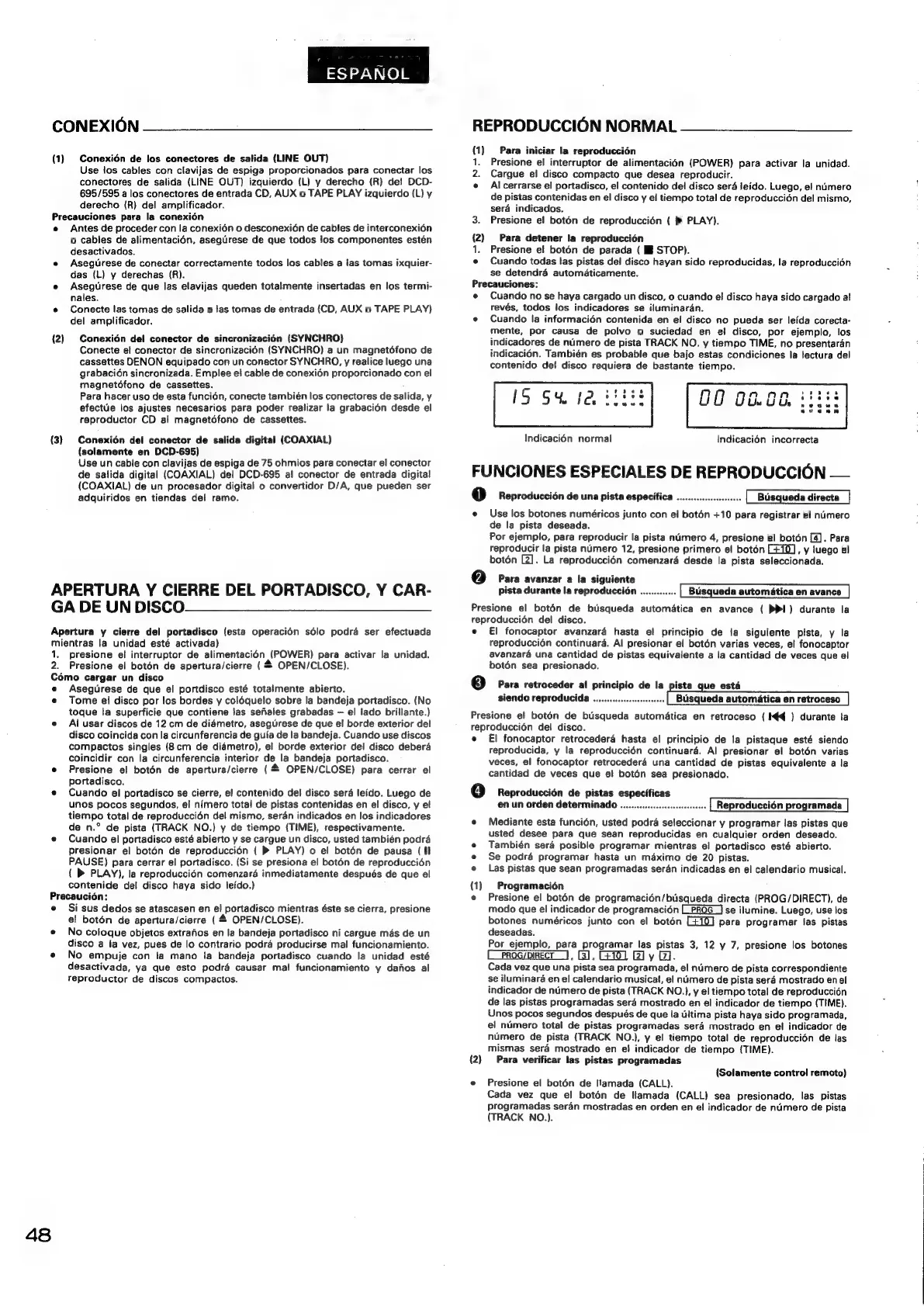Denon DCD-695 - Apertura y Cierre del Portadisco, y Car- Ga de un Disco