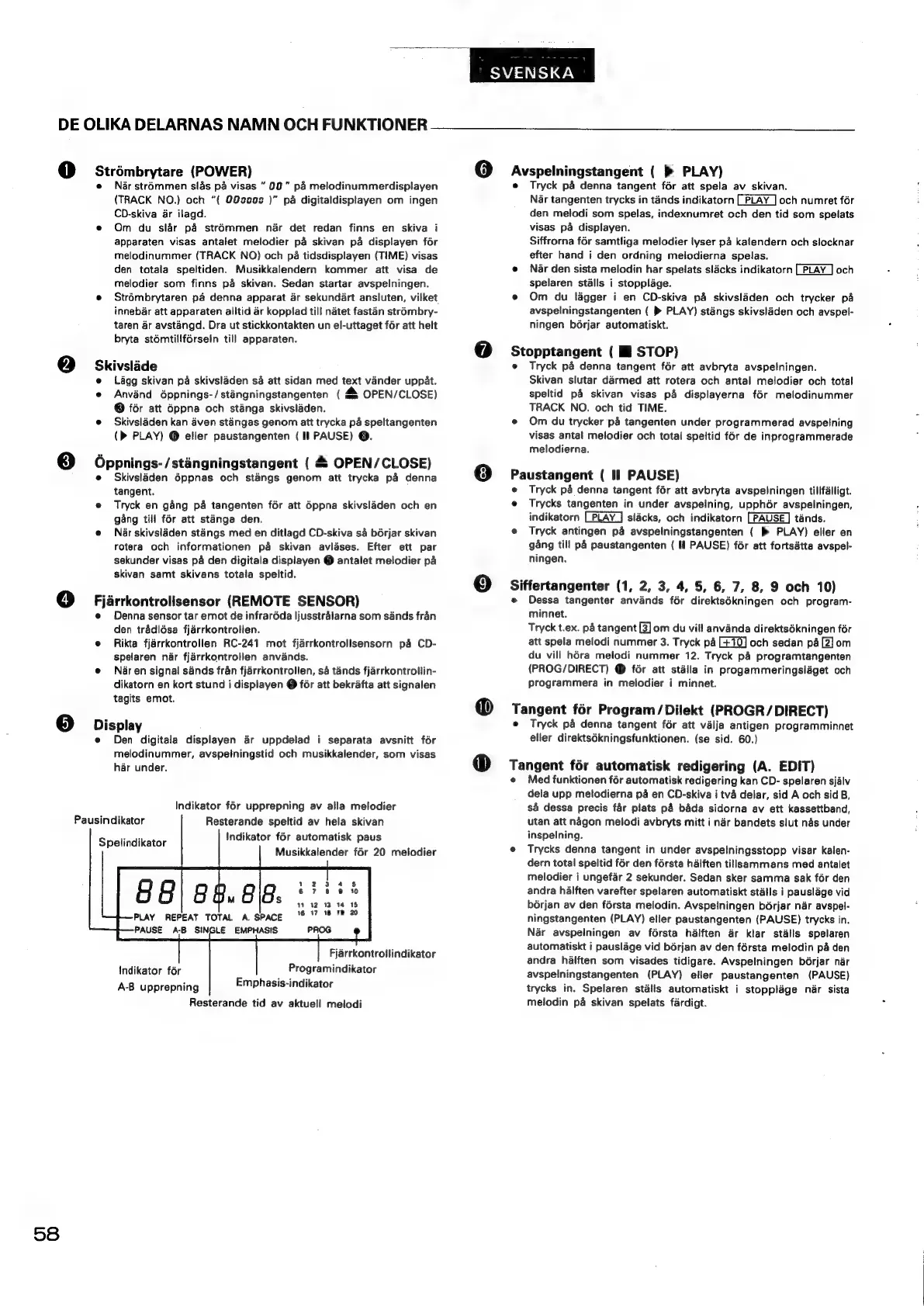 Denon DCD-695 - De Olika Delarnas Namn Och Funktioner