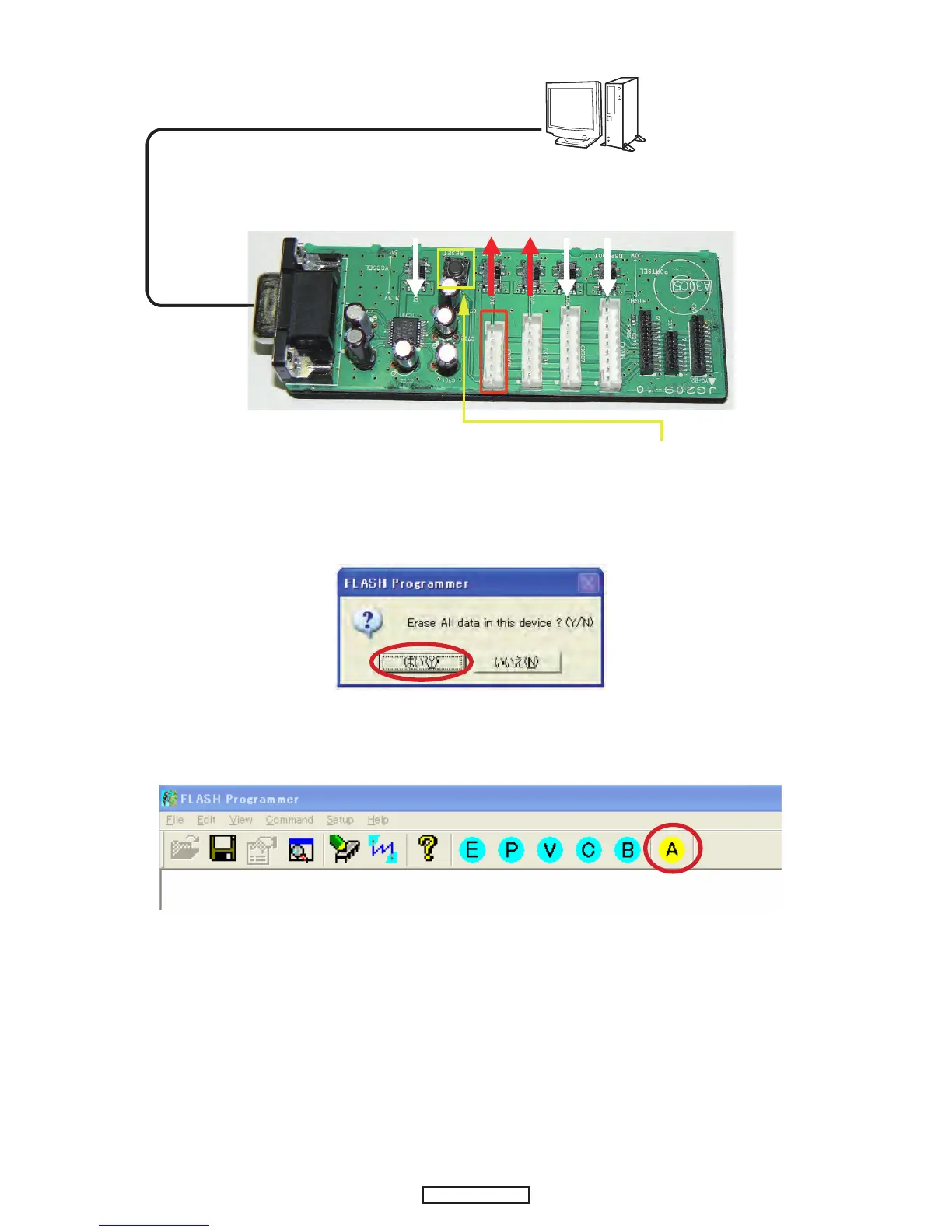 (18) If the connection with the Flash Programmer is successfully made, a dialogue box saying "Erase All data in this