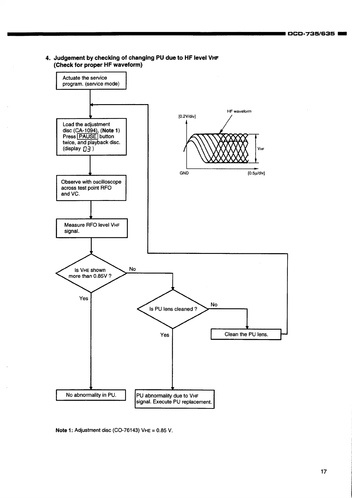 Denon DCD-735 - HF LEVEL (VHF) ANALYSIS; VHF Measurement and PU Lens Care