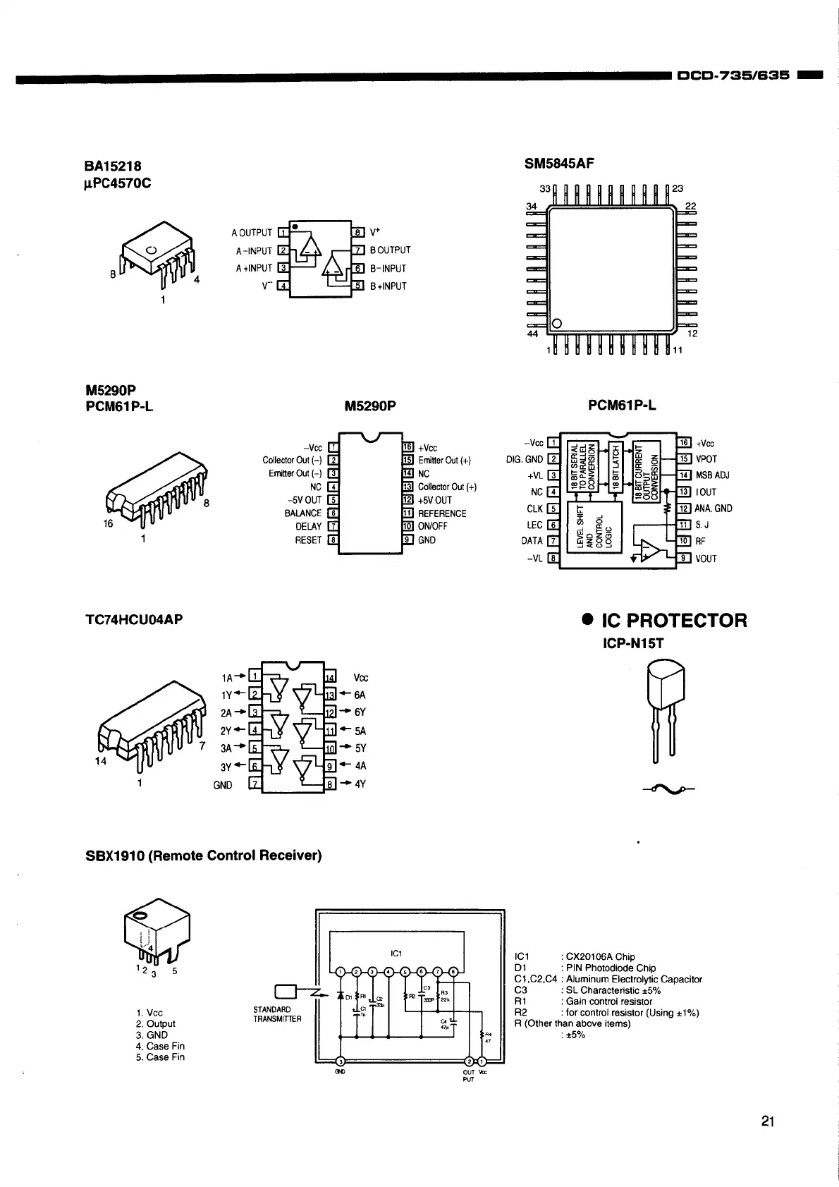Denon DCD-735 - ADDITIONAL IC AND COMPONENT DETAILS; Microcomputer and Audio ICs; Logic IC and Remote Receiver