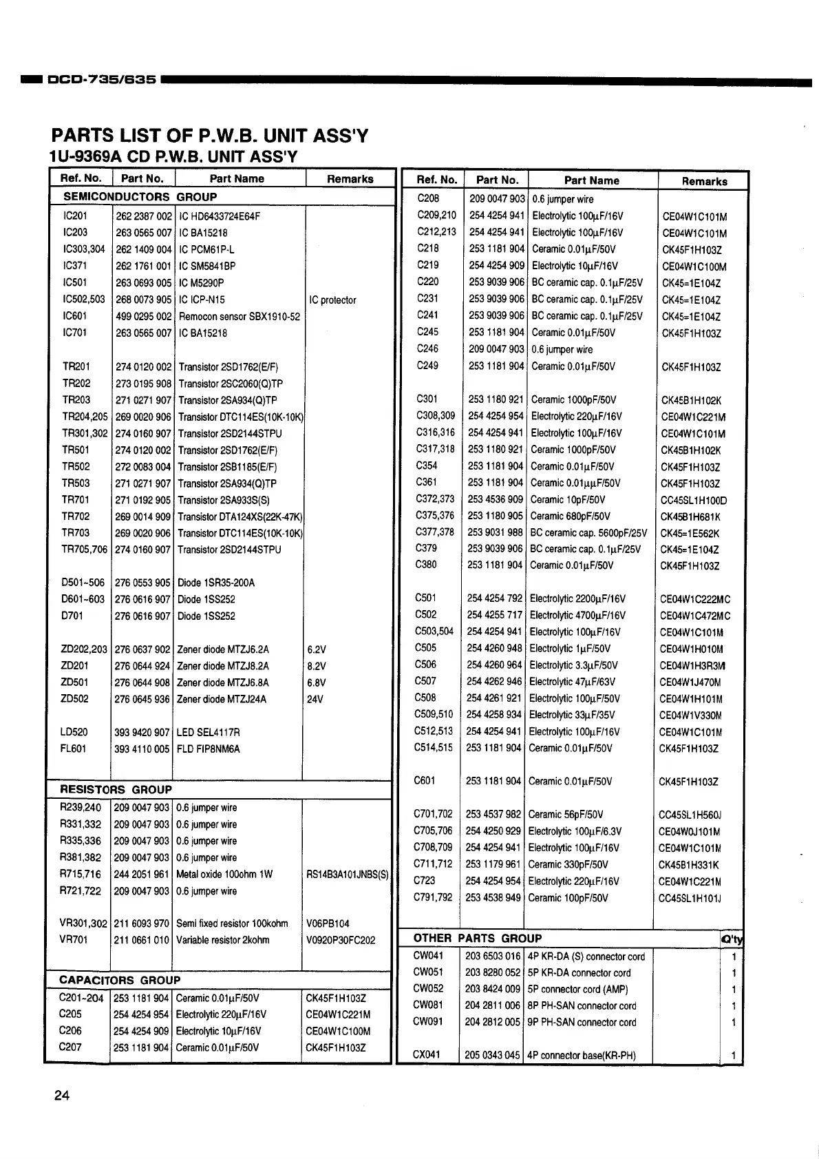 Denon DCD-735 - PARTS LIST: CD P.W.B. UNIT ASSY