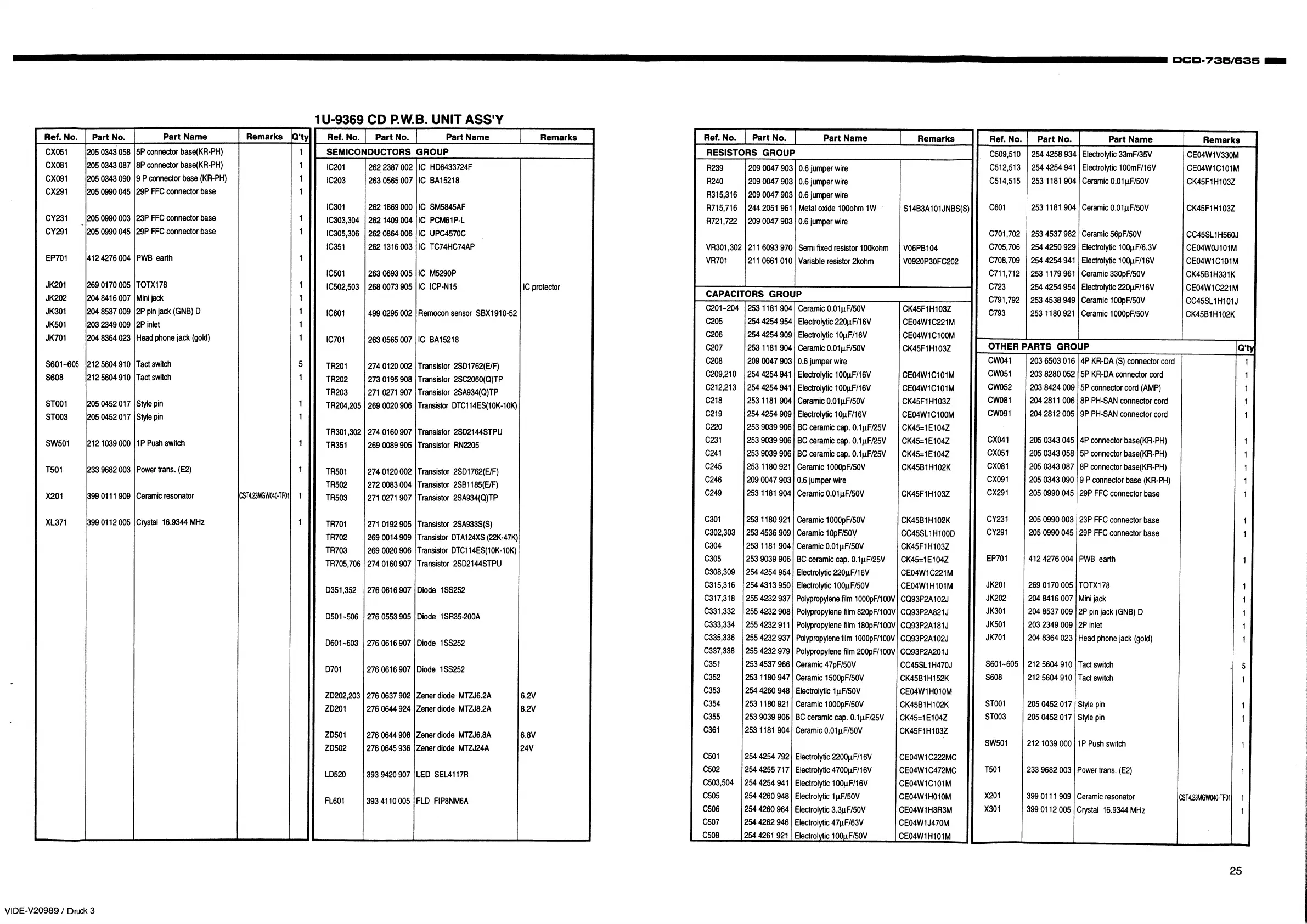 Denon DCD-735 - ADDITIONAL PARTS LISTINGS