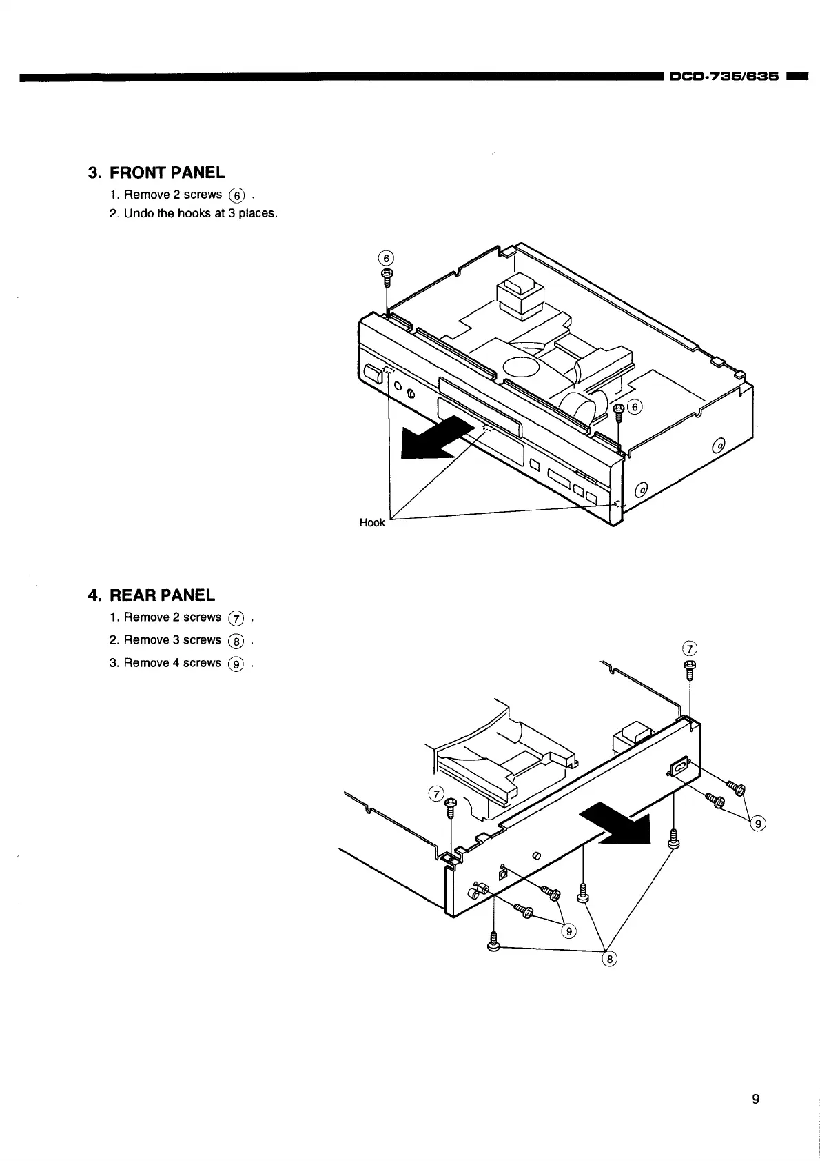 Denon DCD-735 - CHASSIS DISASSEMBLY; Front and Rear Panel Removal