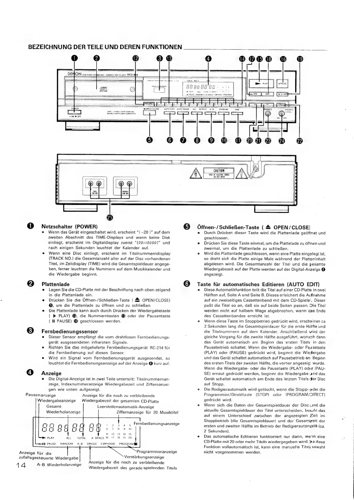 Denon DCD-810 - Bezeichnung der Teile und Deren Funktionen