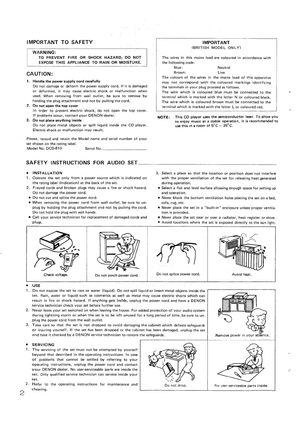 Denon DCD-810 - Important Safety Information; General Warnings and Cautions; Audio Set Safety Instructions; Installation Precautions