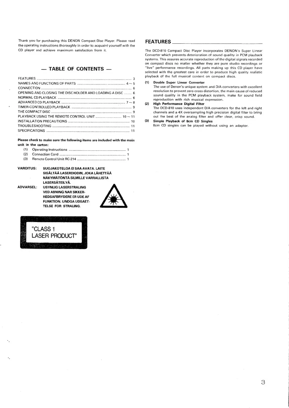 Denon DCD-810 - Product Features Overview; Double Super Linear Converter; High Performance Digital Filter; 8 cm CD Single Compatibility