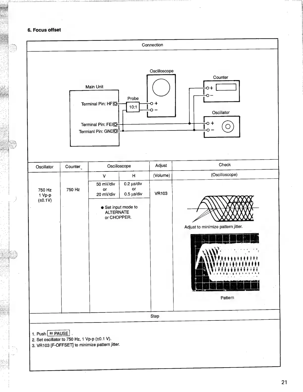 Denon DCD-860 - Focus and Tracking Adjustments; Focus Offset Adjustment
