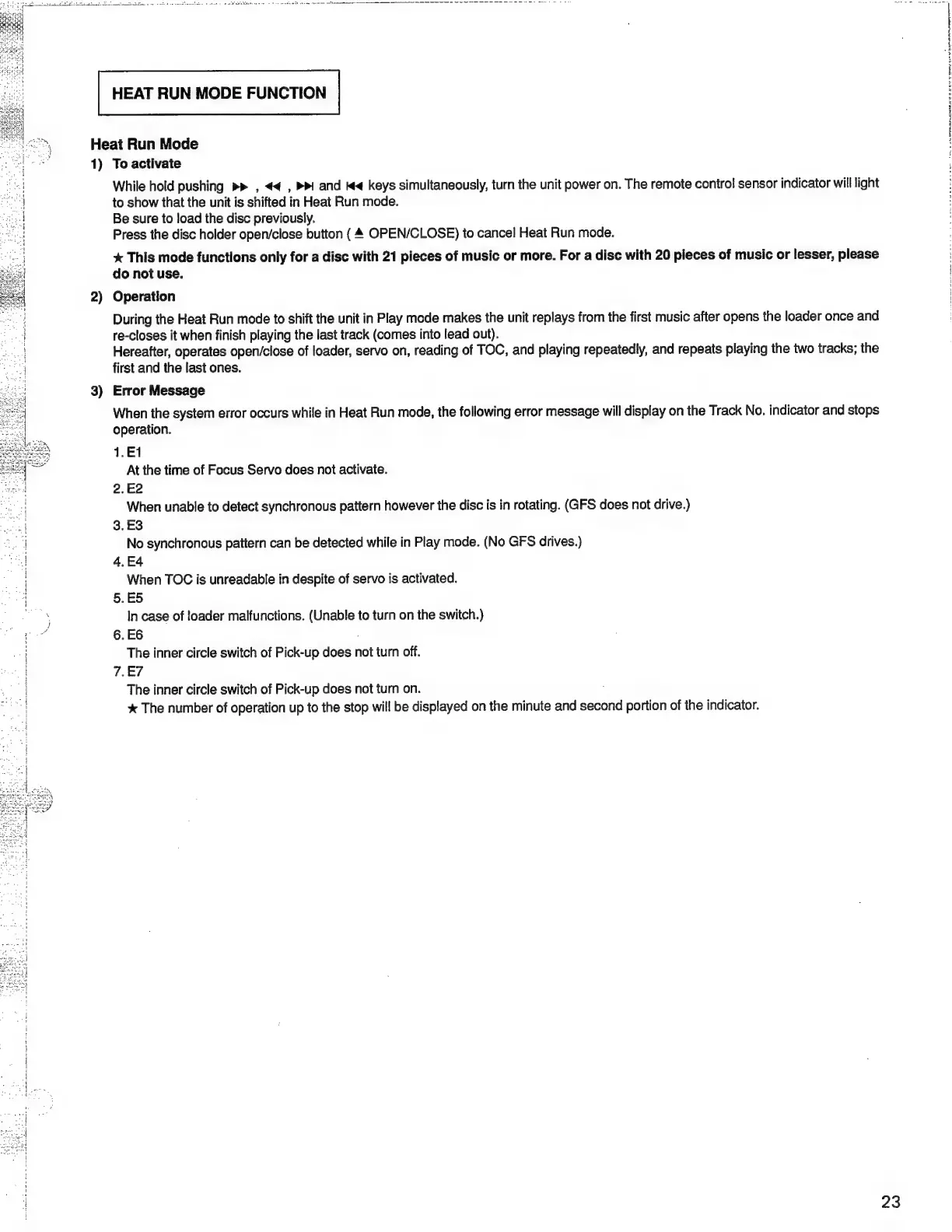 Denon DCD-860 - Heat Run Mode Function; Activation, Operation, and Errors
