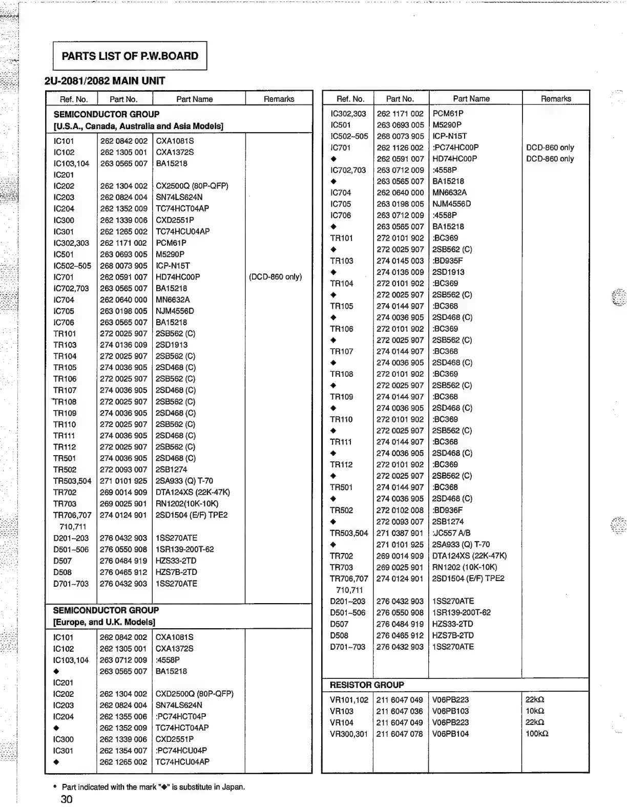 Denon DCD-860 - Parts List of P.W.Board; Semiconductors and Resistors