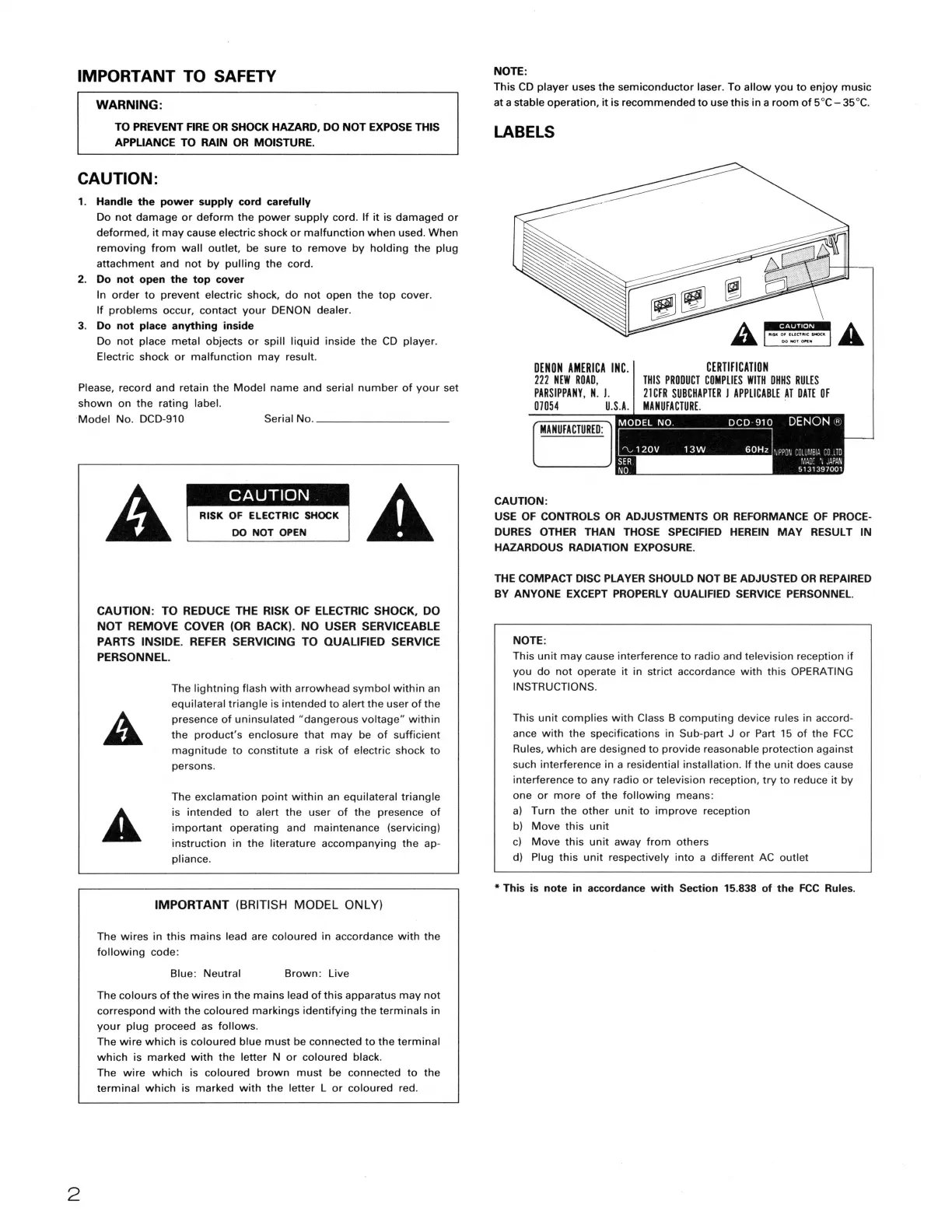 ·Model No. DCD-910 Serial No. ________ _