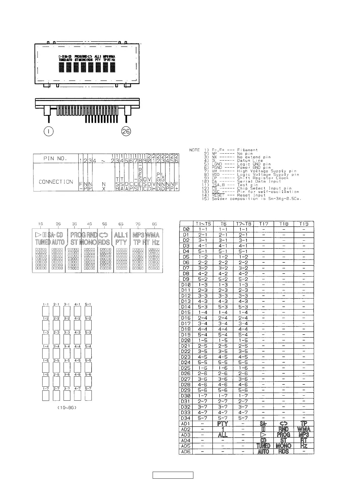 Denon DCD-CX3 - FL Display (8-BT-258 GINK); Pin and Anode Connection Details; Segment Designation Table
