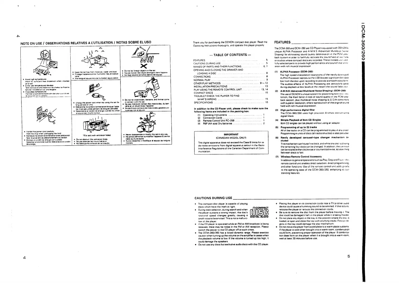 Denon DCM-260 - Usage Notes and Observations; Cautions During Operation