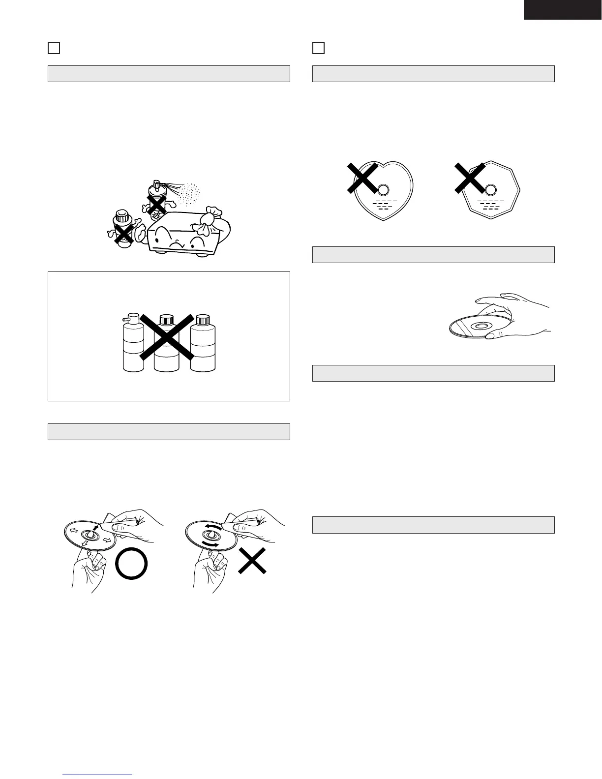• Do not get fingerprints, grease or dirt on discs.