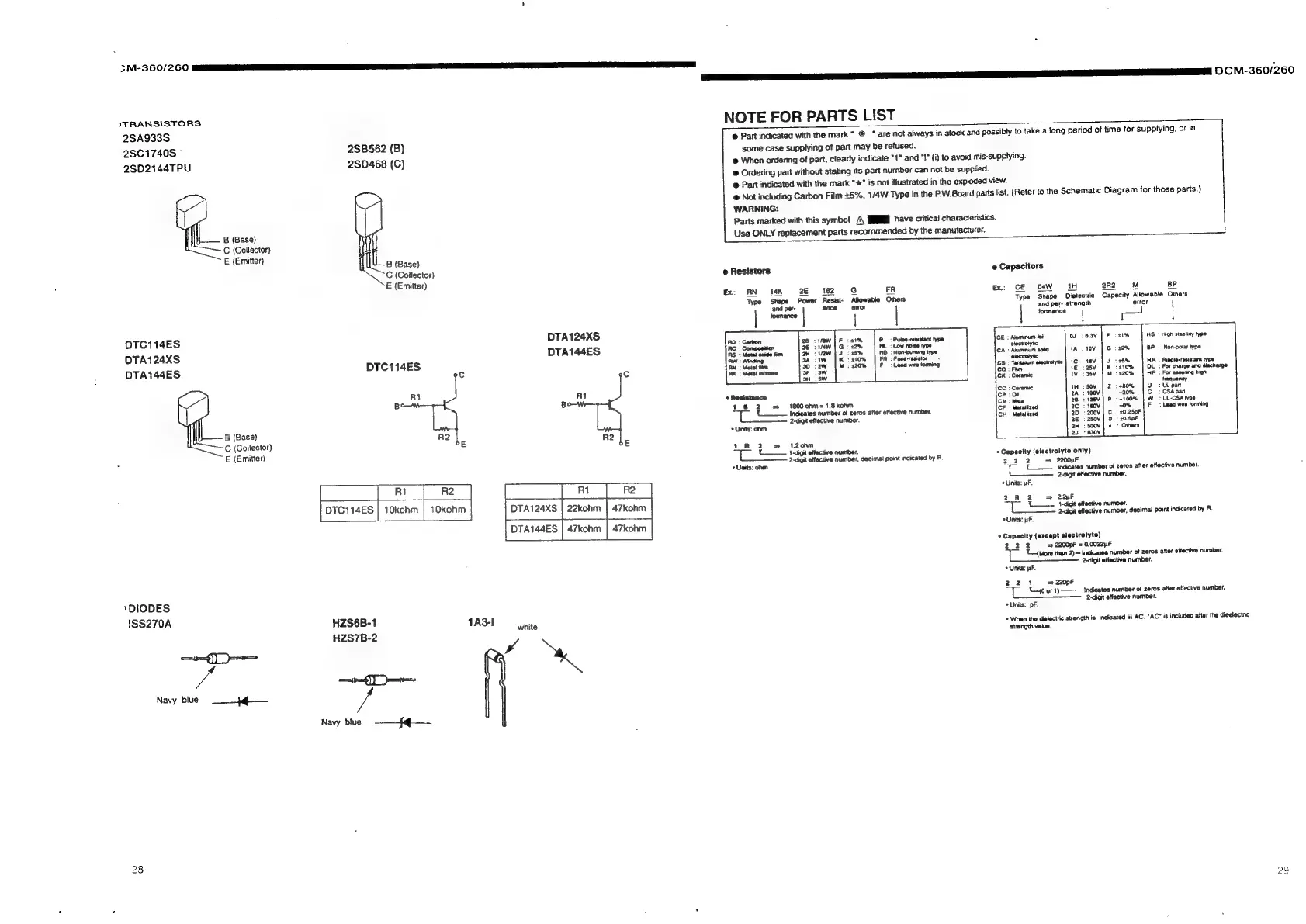 Denon DCM-360 - Component Identification and Specifications; Transistors and Diodes Identification; Resistor and Capacitor Specifications; Notes for Ordering Parts