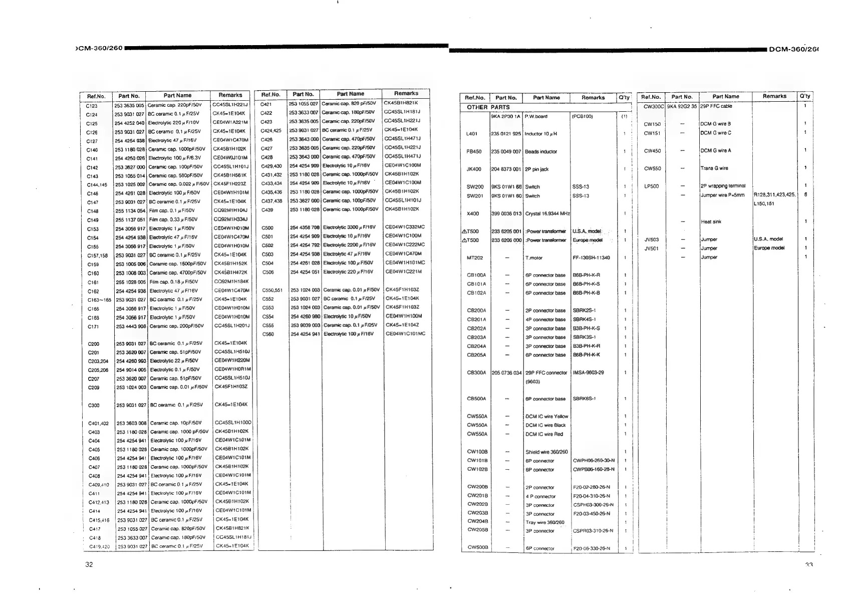 Denon DCM-360 - Main Printed Wiring Board Parts List (DCM-360 Continued); Capacitors Group (Continued); Other Parts Group
