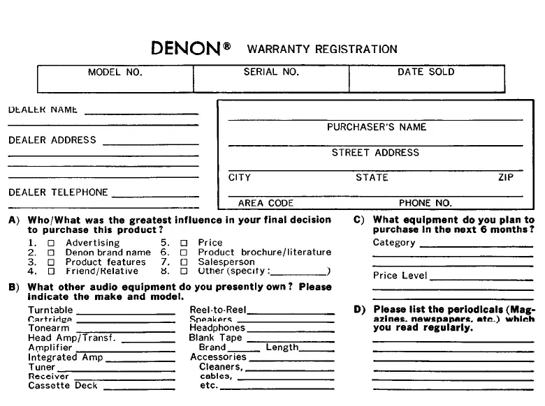 2. 0 Denon brand name 6. 0 Product brochure/literature