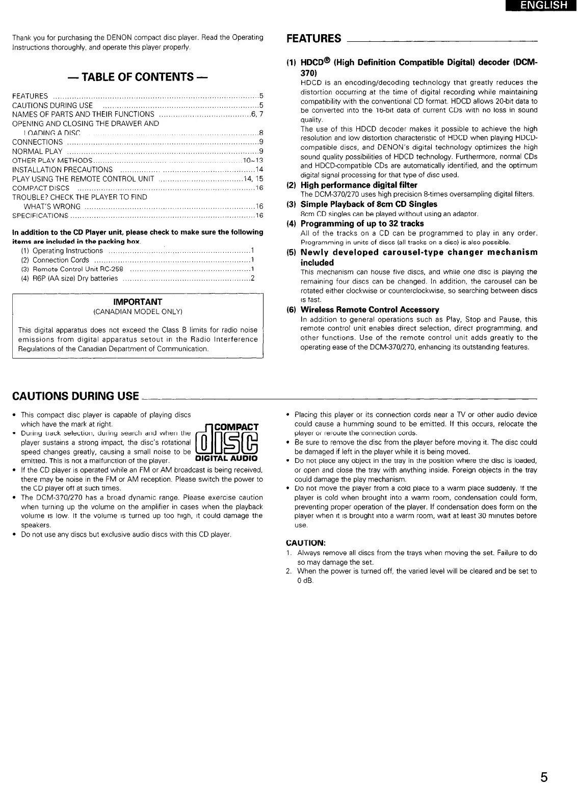 Thank you for purchasing the DENON compact disc player. Read the Operating