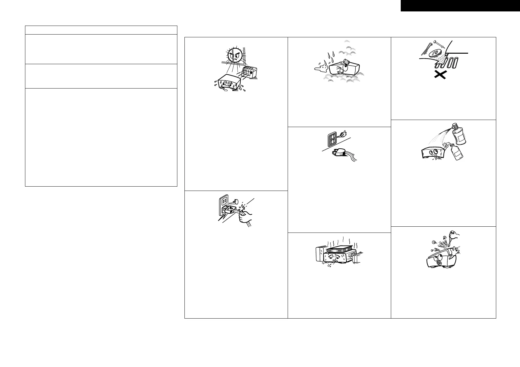 • Keep the apparatus free from moisture, water, and