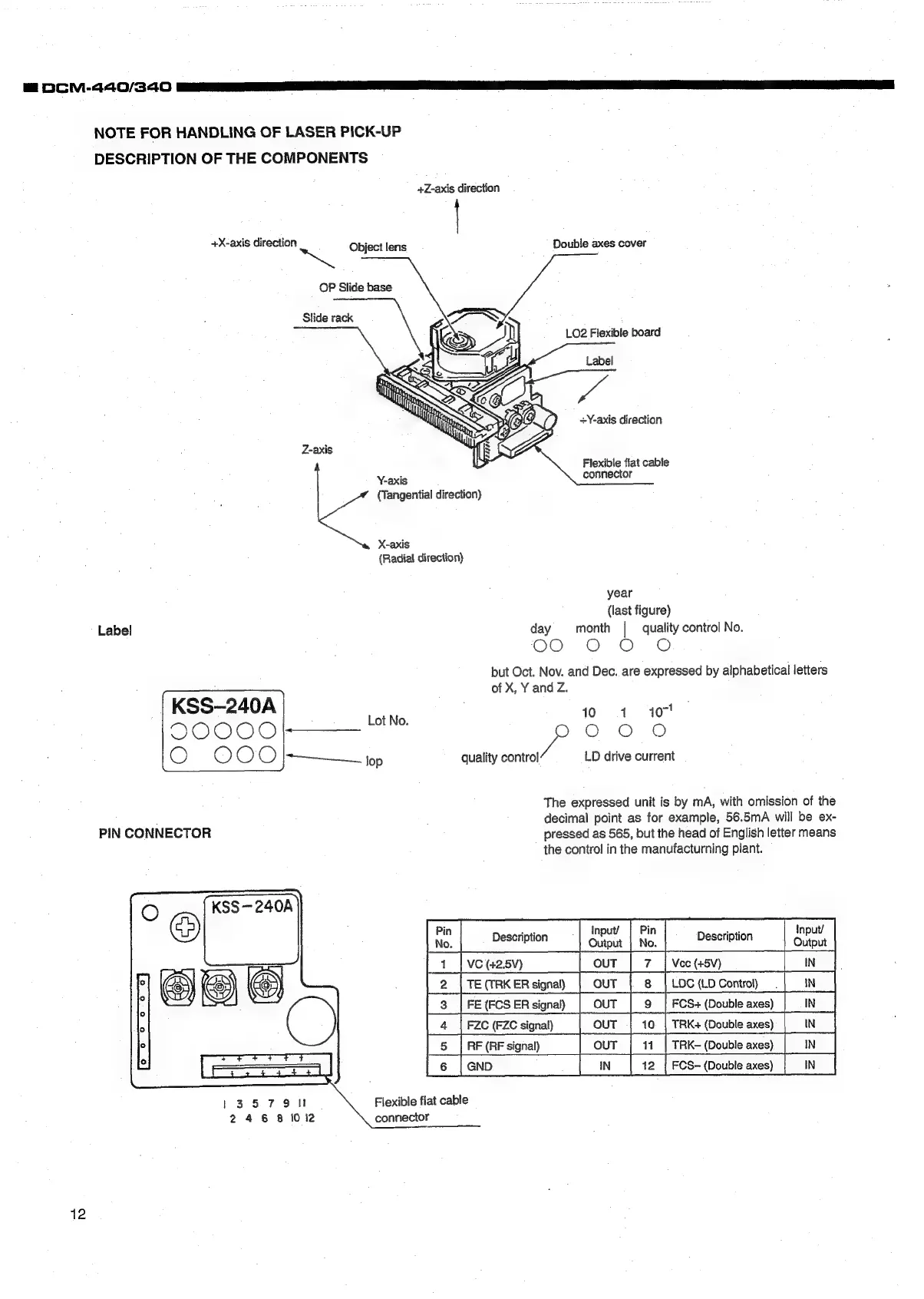 Denon DCM-440 - Component Handling; Note for Handling of Laser Pick-up
