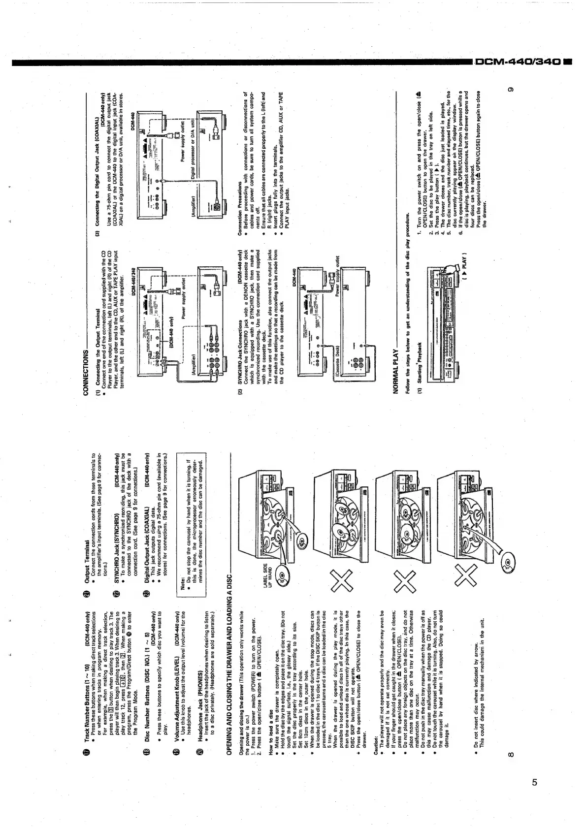 Denon DCM-440 - Setup and Connections; Opening and Closing the Drawer and Loading a Disc; Connections