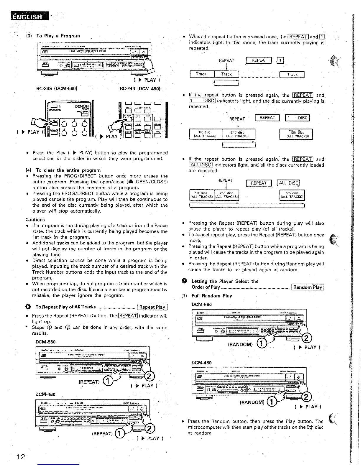 Denon DCM-460 - To Play a Program; To Repeat Play of All Tracks; Letting the Player Select the Order of Play
