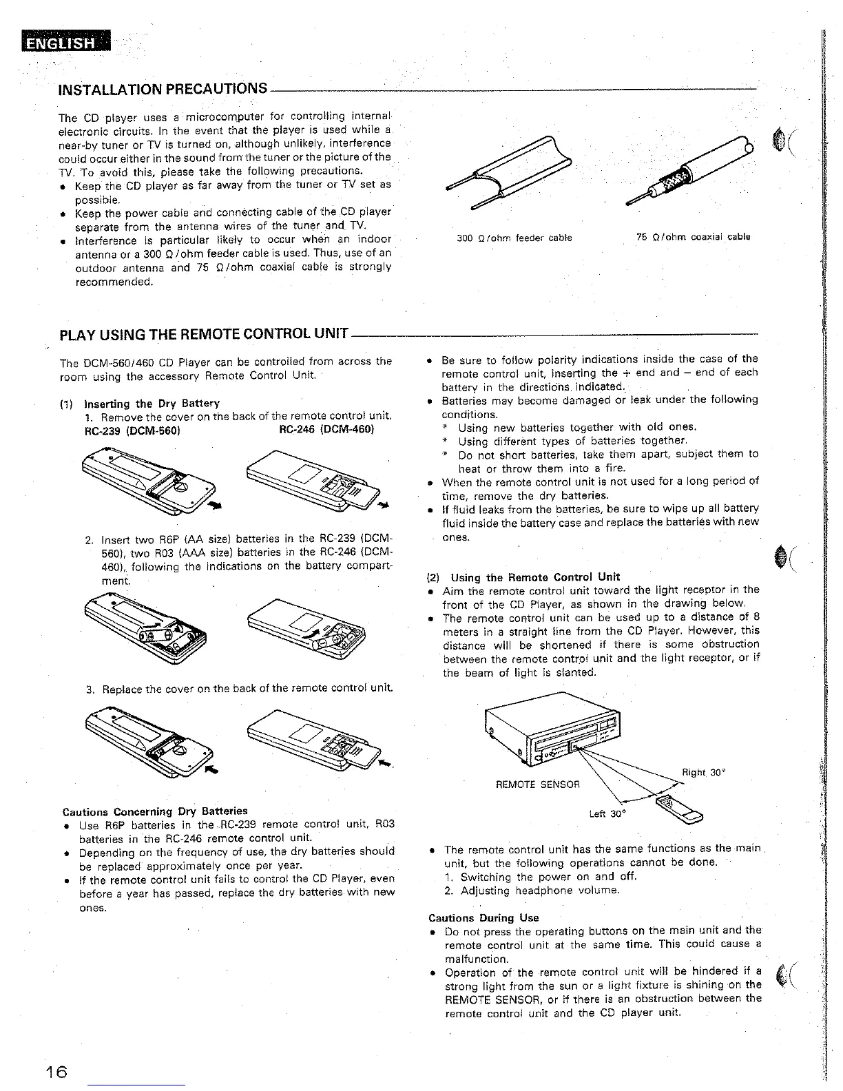 Denon DCM-460 - Inserting the Dry Battery; Using the Remote Control Unit