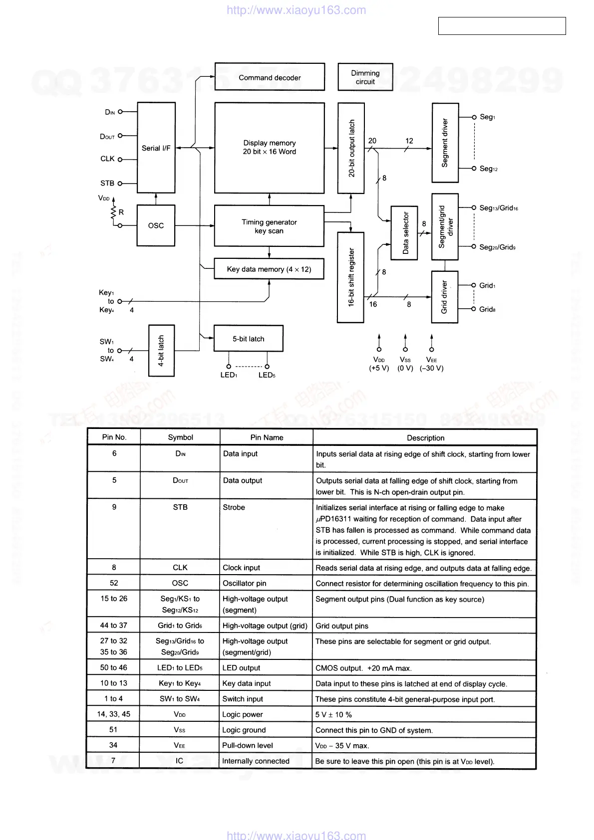 UPD16311 Pin Description