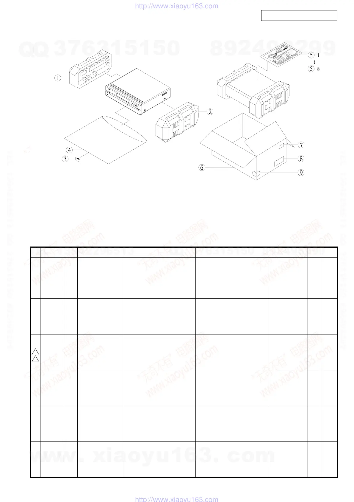 PARTS LIST OF PACKING & ACCESSORIES