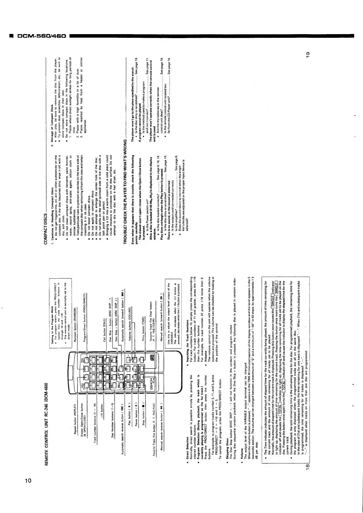 Denon DCM-560 - Compact Disc Handling and Care; Handling and Cleaning Compact Discs