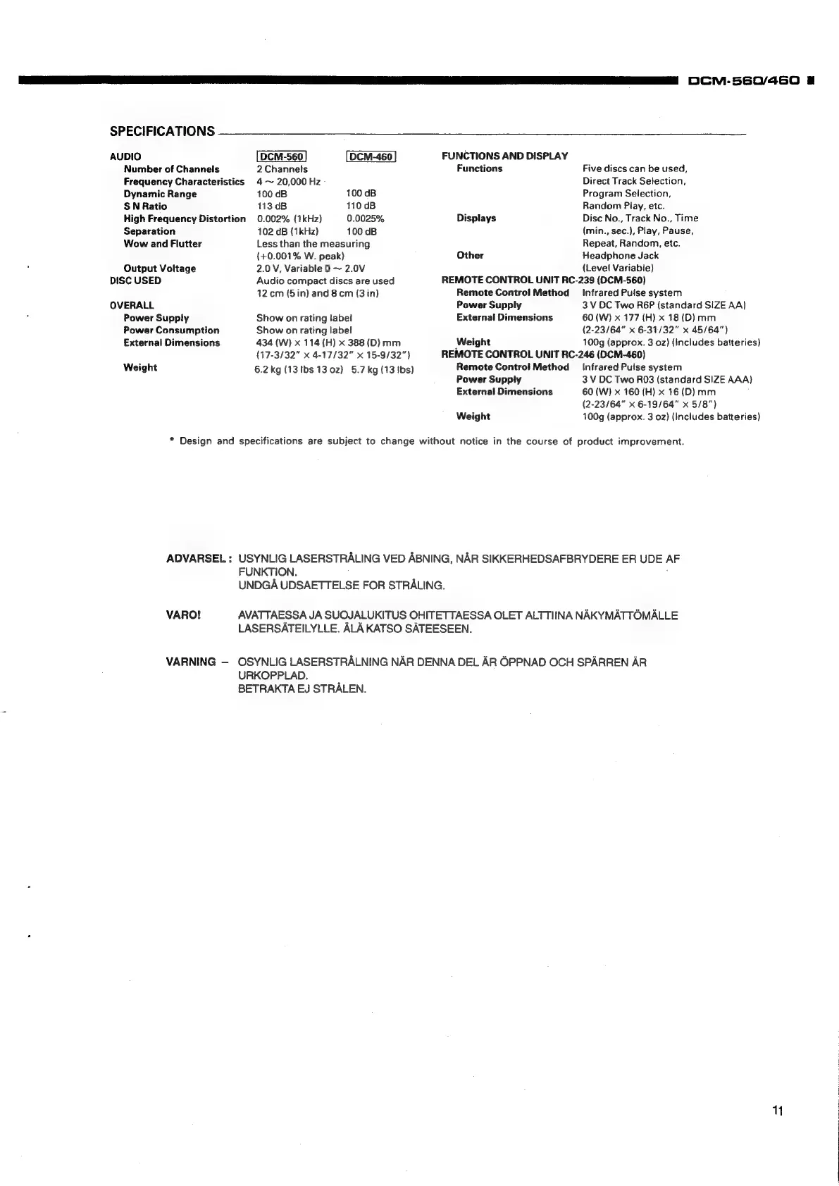 Denon DCM-560 - Technical Specifications