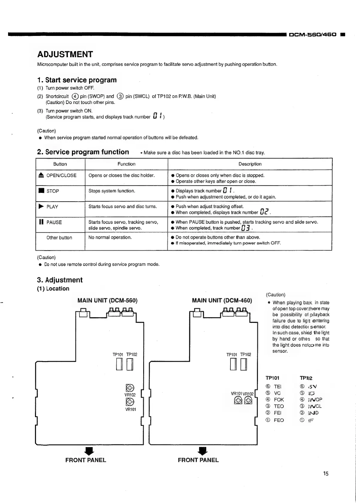 Denon DCM-560 - Service and Adjustment Procedures; Entering Service Mode; Service Program Functions Overview; Adjustment Point Locations