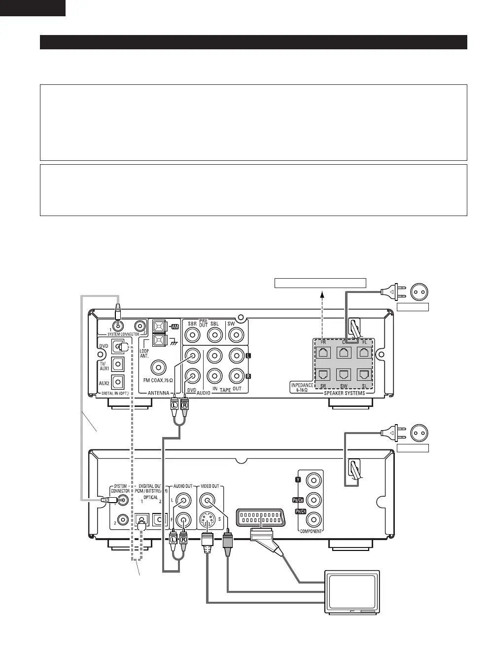 • Only one DVD player can be connected to the AVR-M330 using system connections. System operations cannot be performed properly if